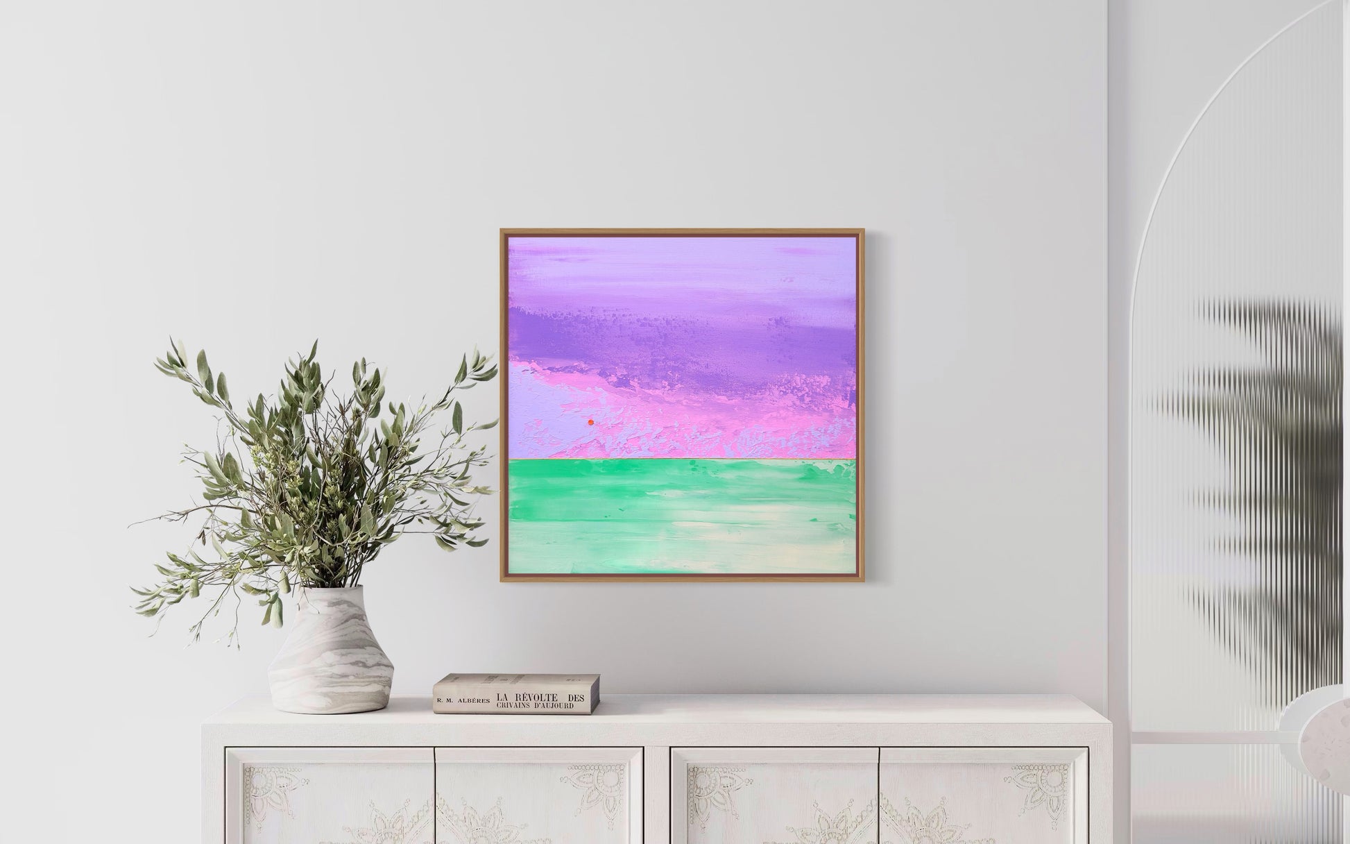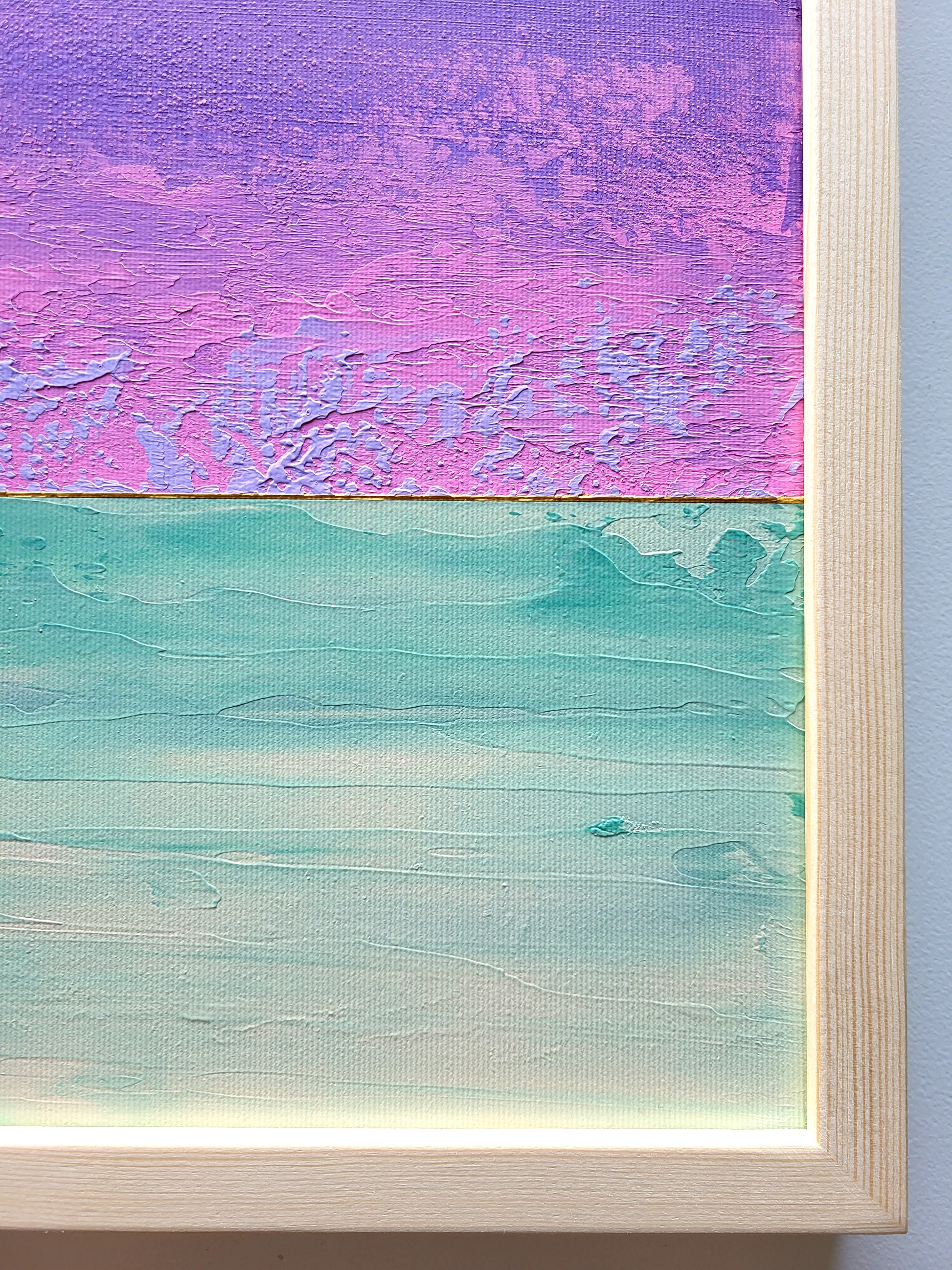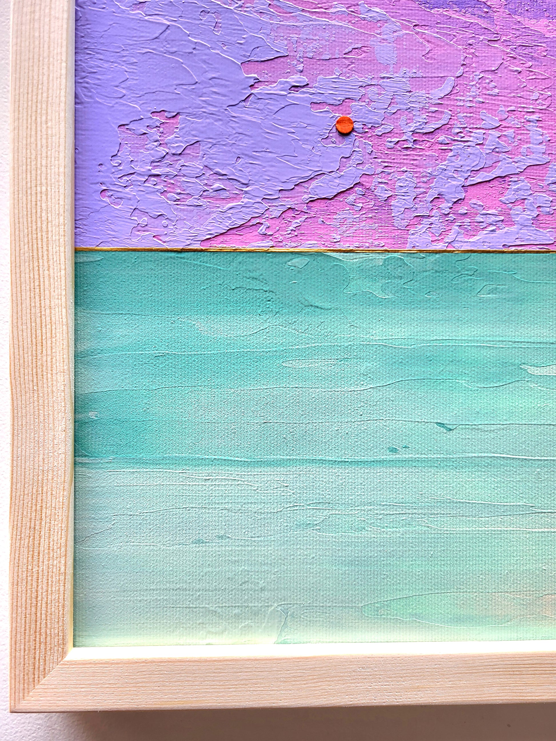 Obraz w zielono-fioletowej tonacji z elementami złotej metalicznej farby.
