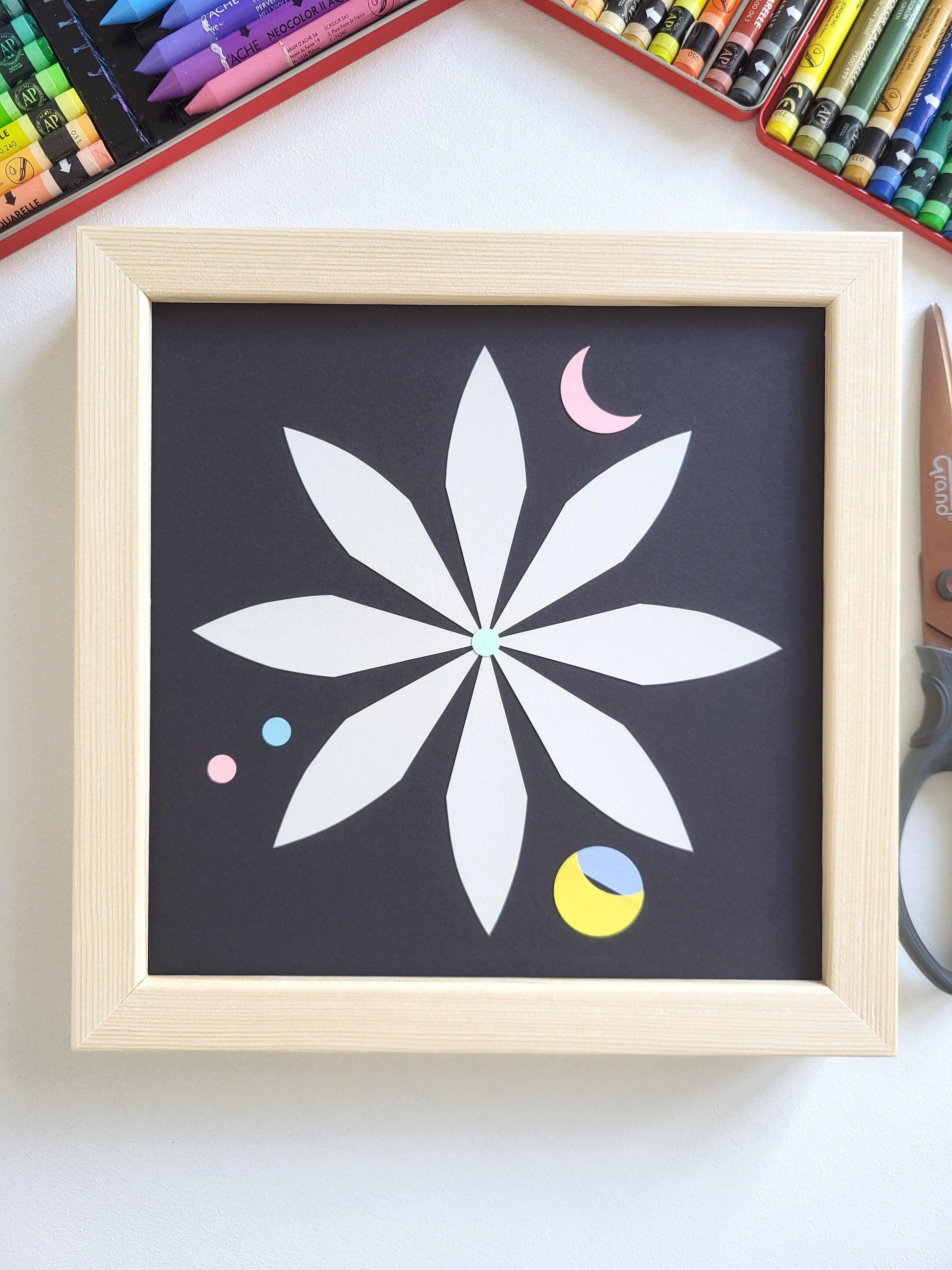 ✹ Oprawiony w drewnianą ramę ( sosna lub buk ) ze szkłem akrylowym, gotowy do zawieszenia lub postawienia ( szeroki profil ramy umożliwia nie tylko powieszenie pracy na ścianie ale również postawienie jej na półce czy komodzie ).