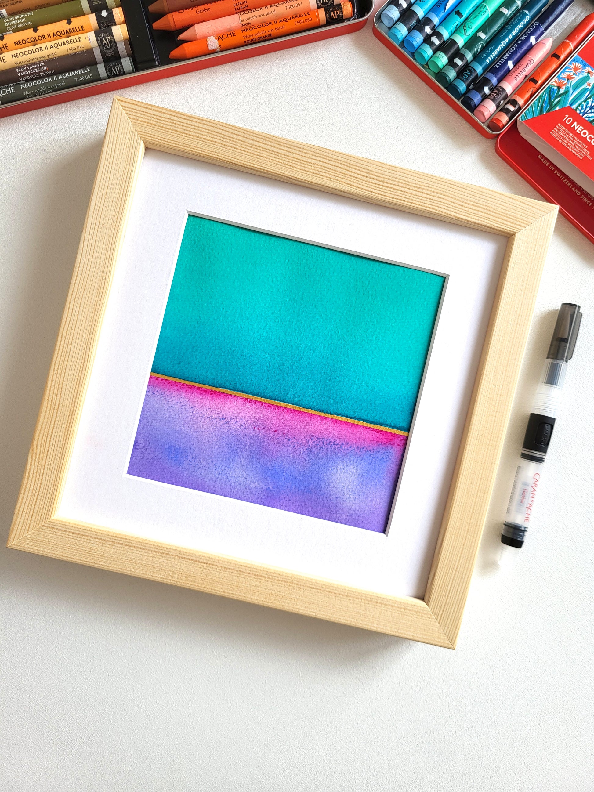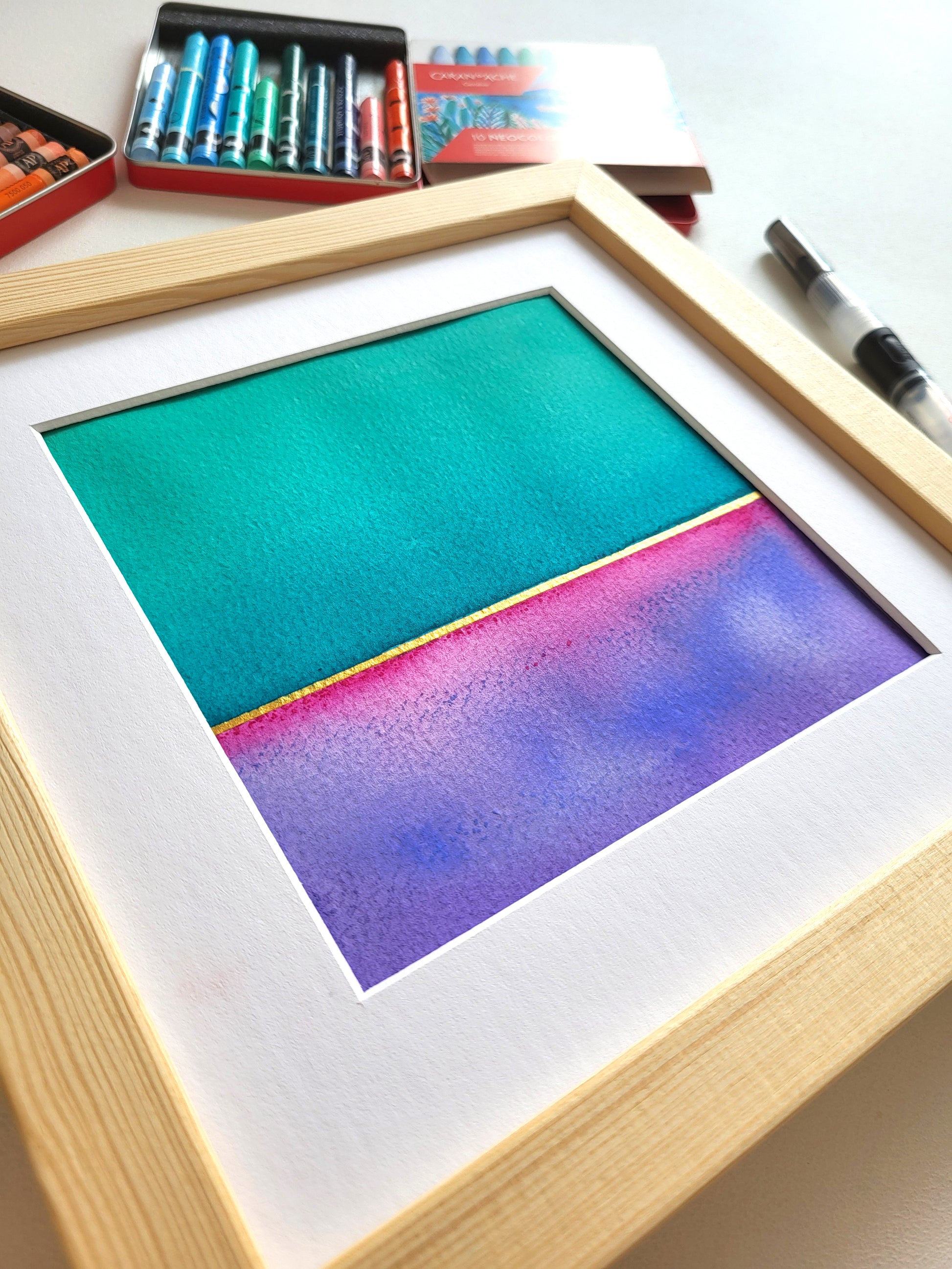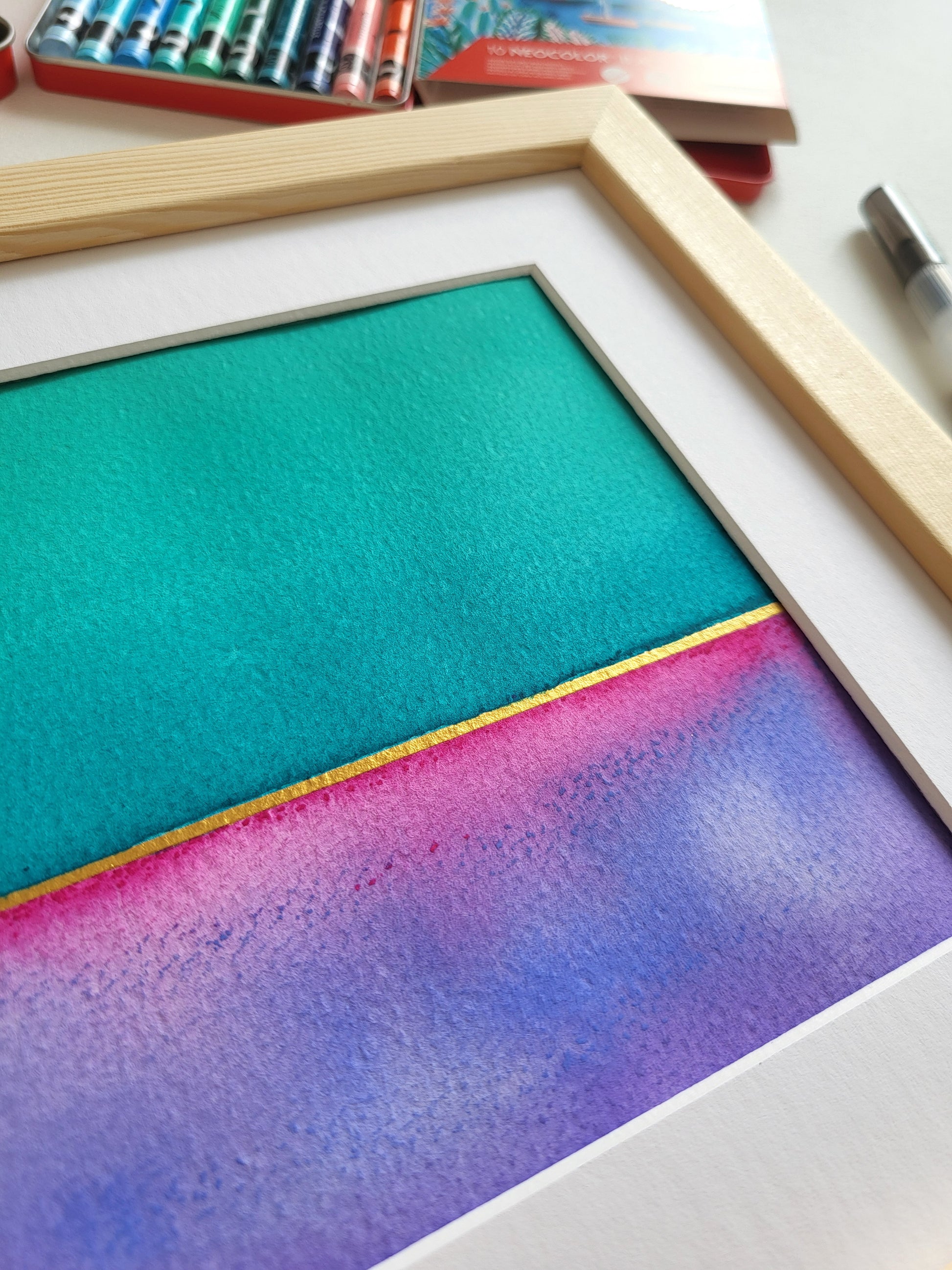 Praca na papierze akwarelowym z kolekcji "Golden Horizon", wyróżniająca się przepiękną, żywą kolorystyką oraz subtelnymi złotymi akcentami.