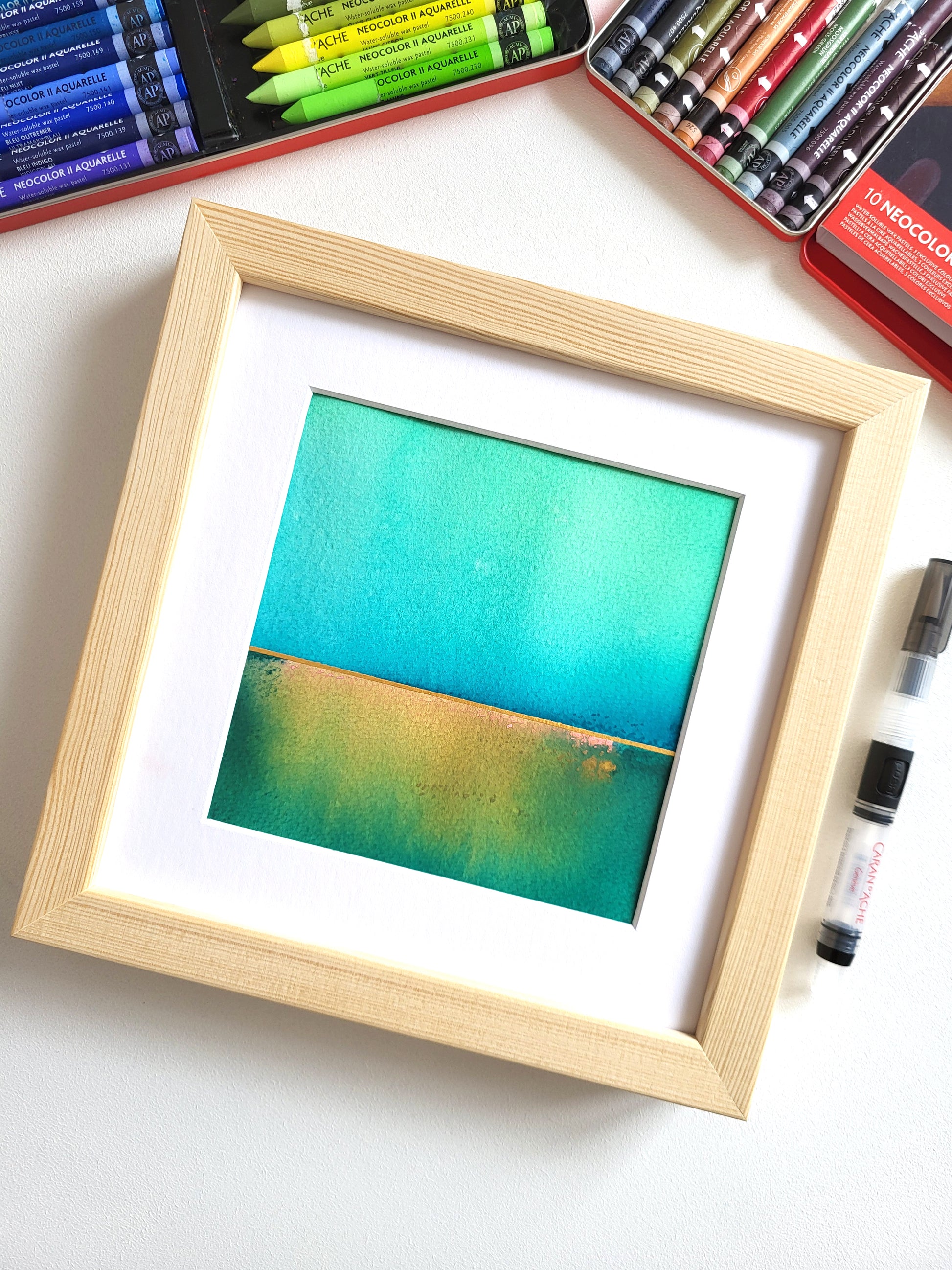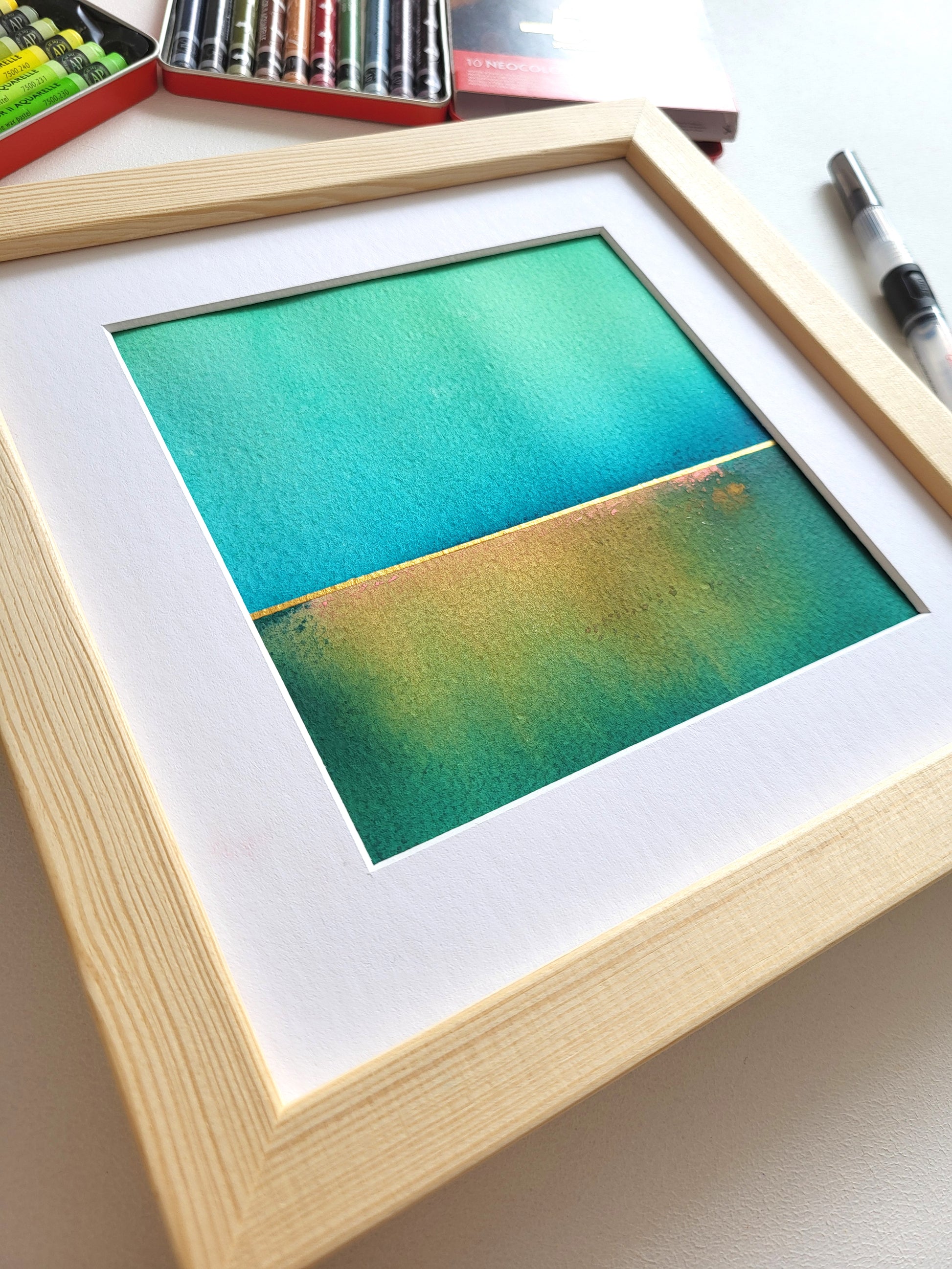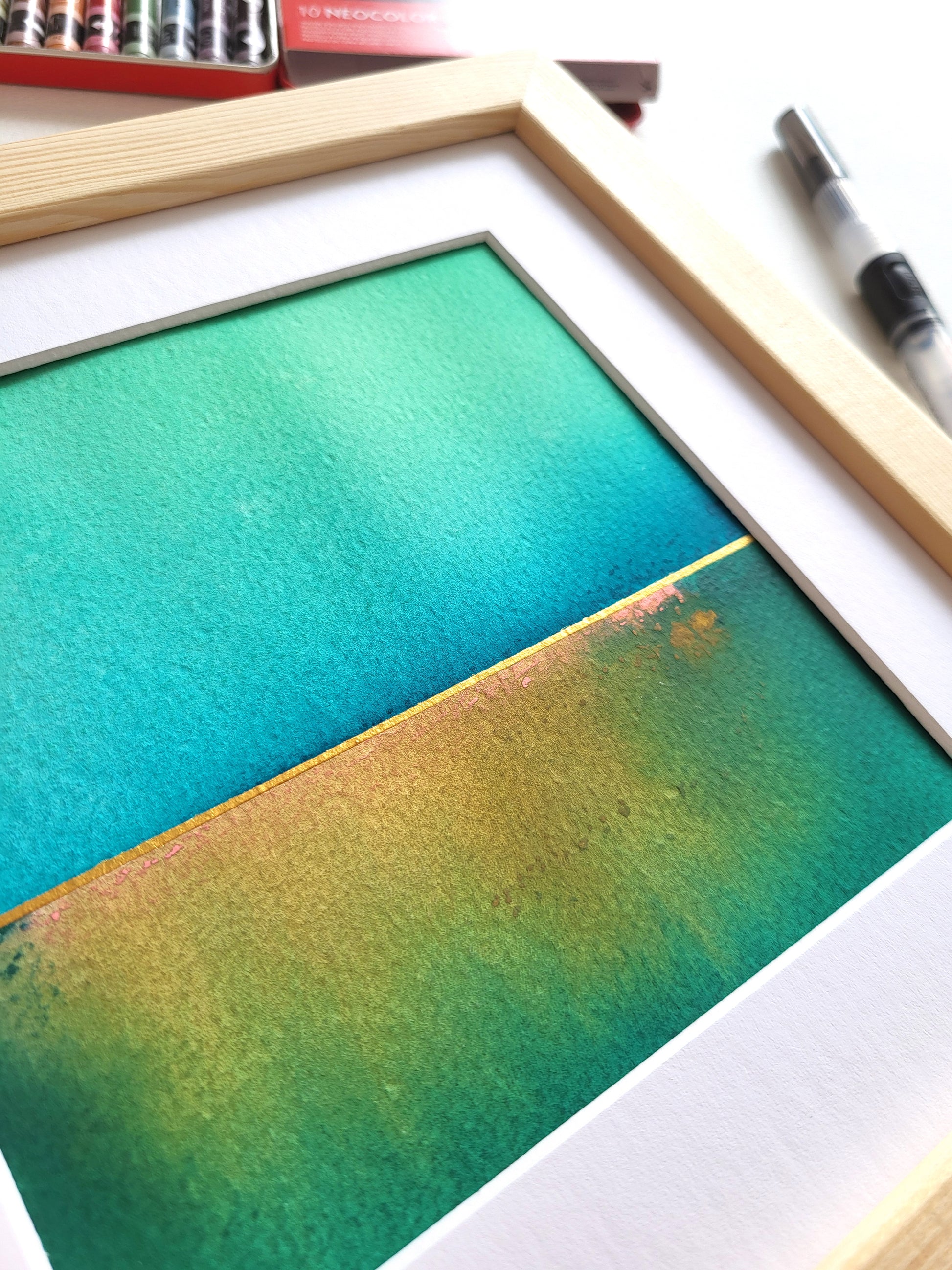 Praca na papierze akwarelowym z kolekcji "Golden Horizon", wyróżniająca się przepiękną, żywą kolorystyką oraz subtelnymi złotymi akcentami.