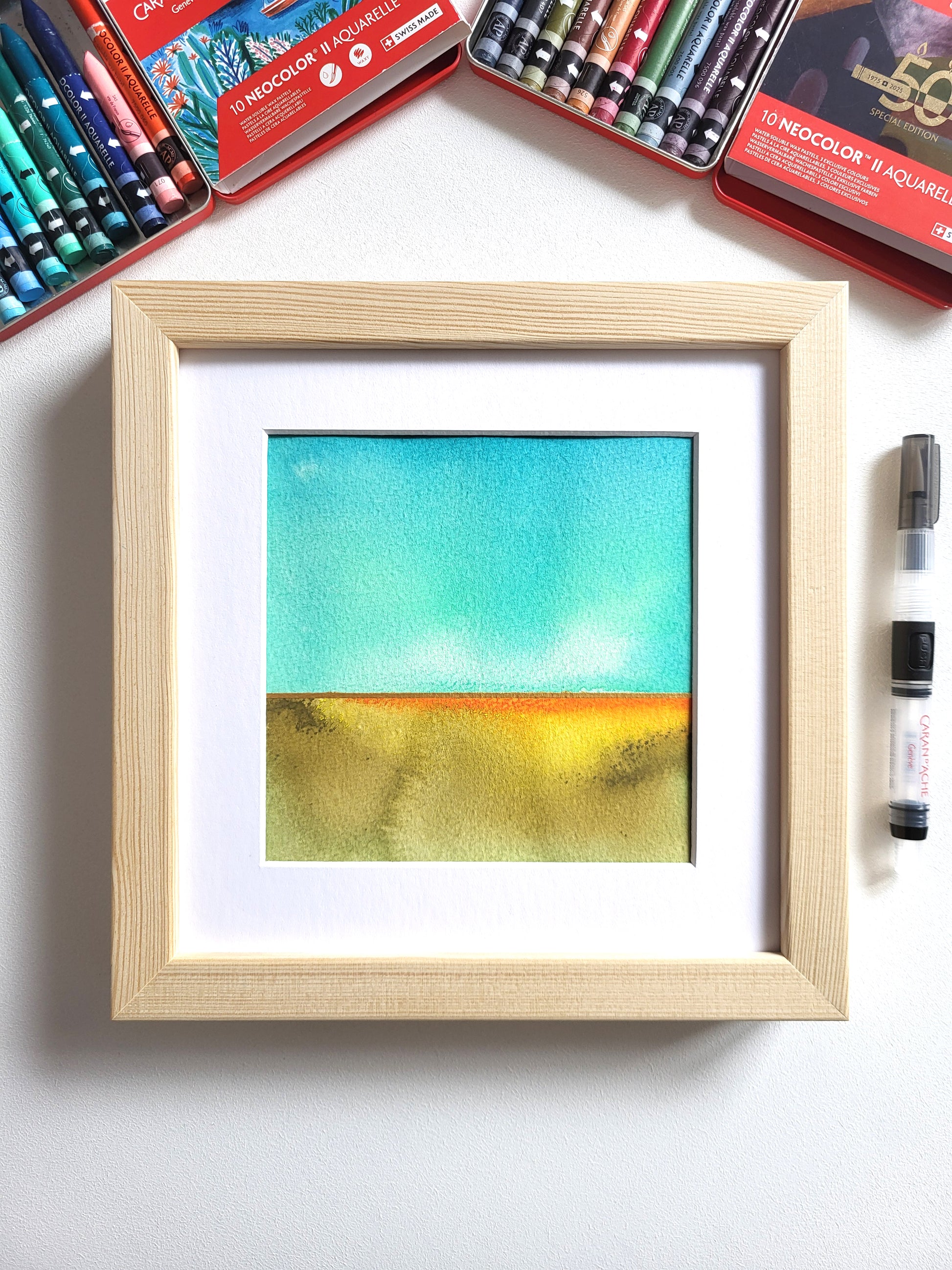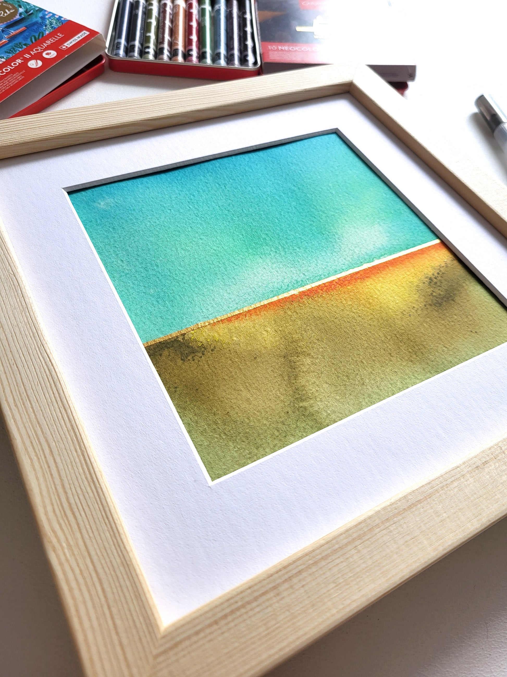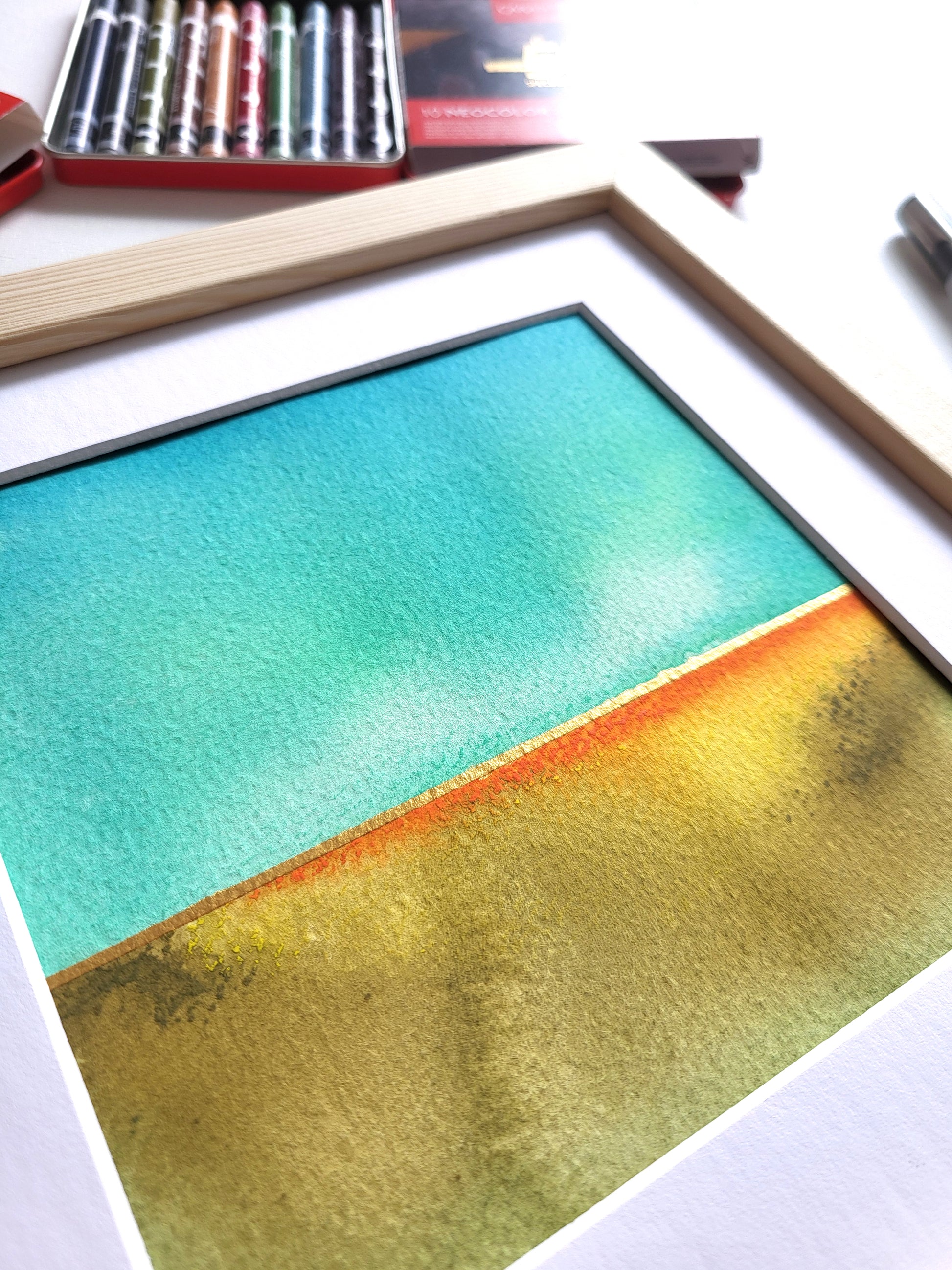 Praca na papierze akwarelowym z kolekcji "Golden Horizon", wyróżniająca się przepiękną, żywą kolorystyką oraz subtelnymi złotymi akcentami.