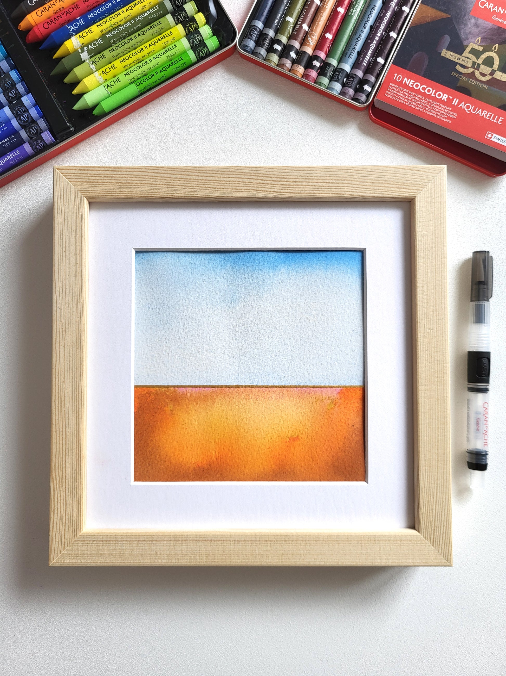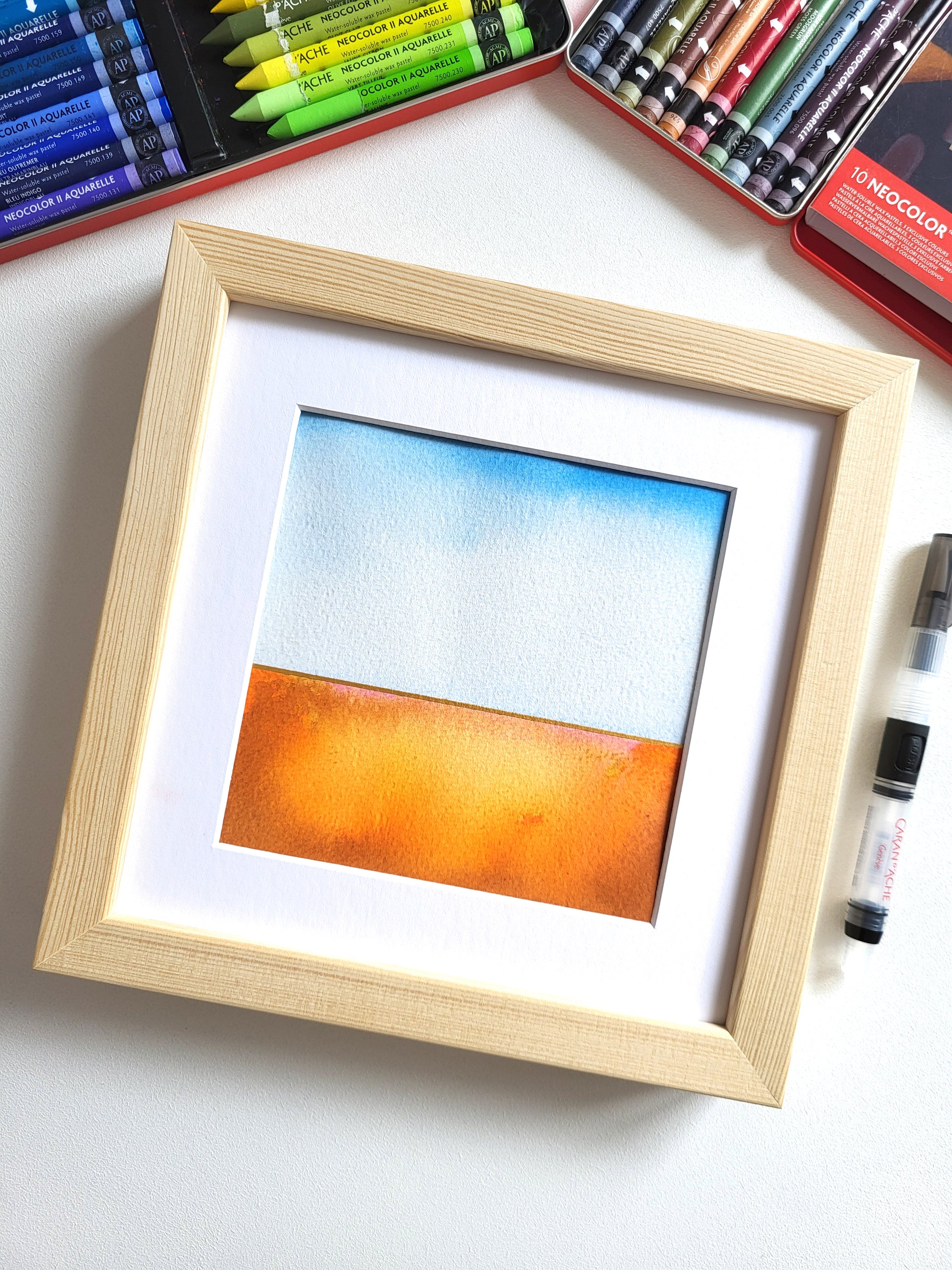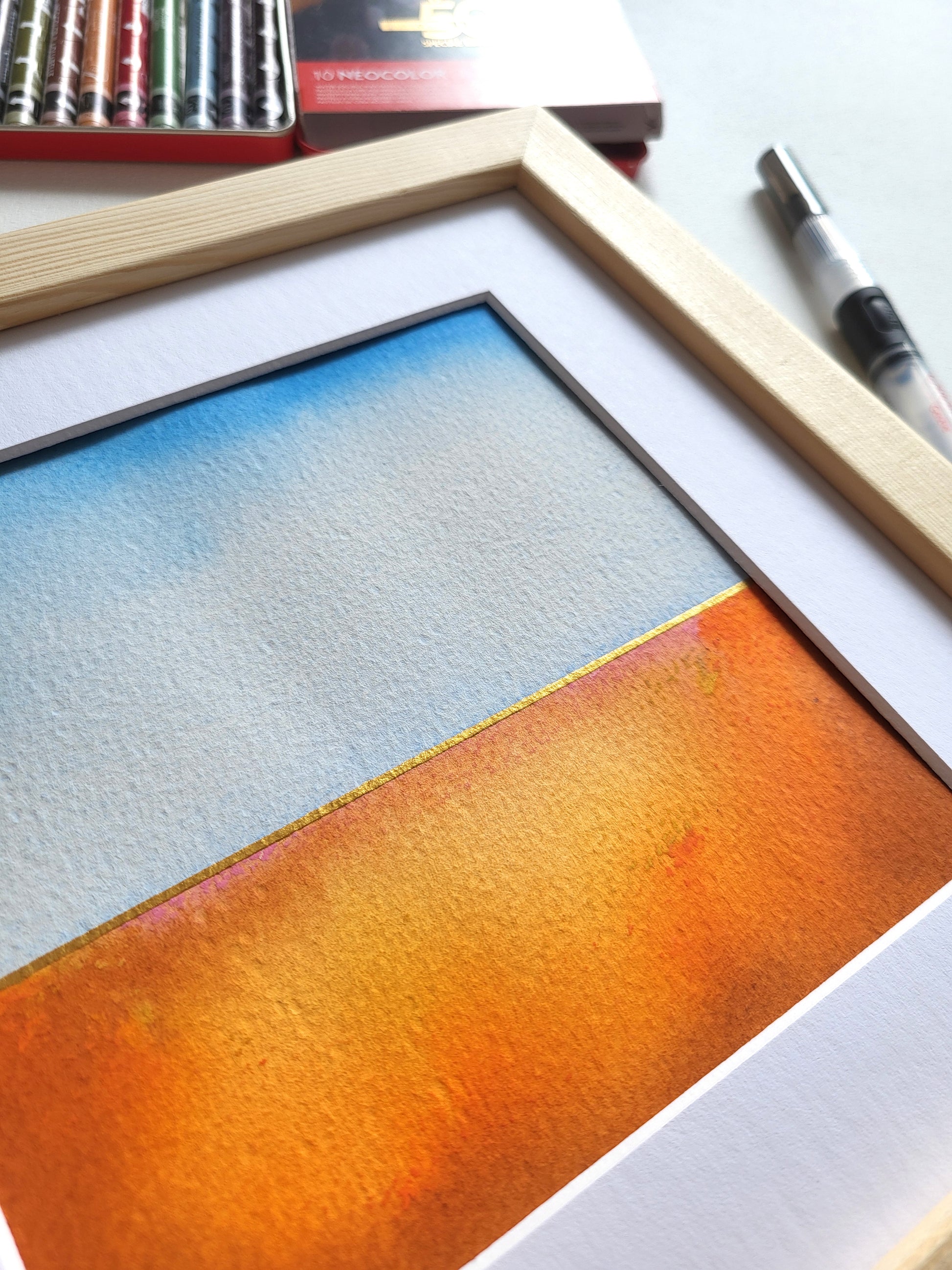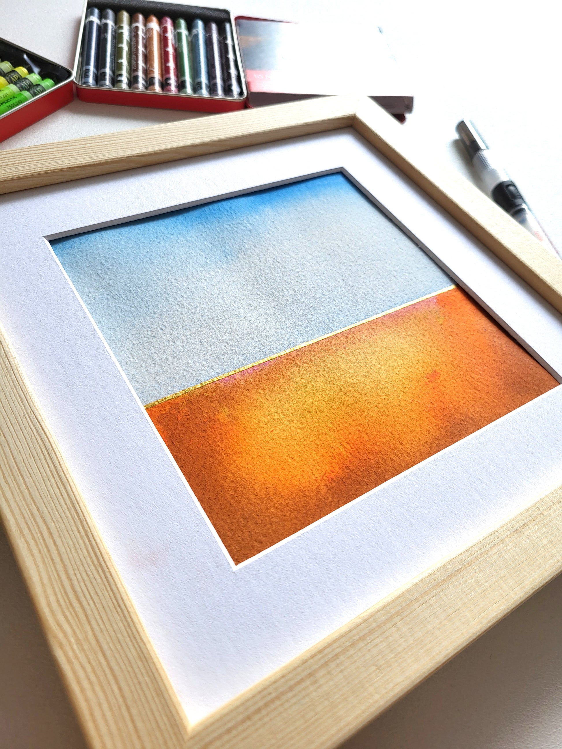 Praca na papierze akwarelowym z kolekcji "Golden Horizon", wyróżniająca się przepiękną, żywą kolorystyką oraz subtelnymi złotymi akcentami.