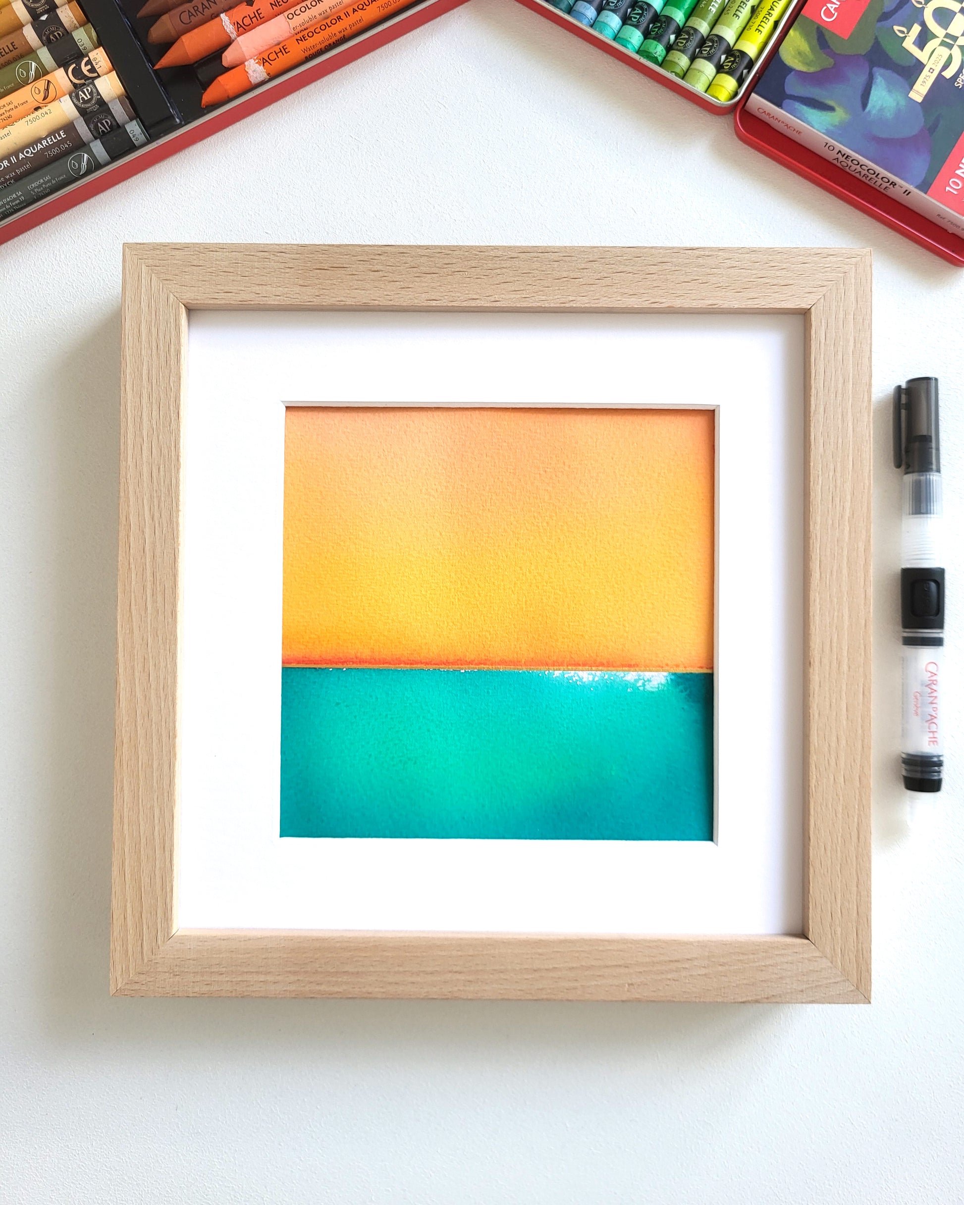 Praca na papierze akwarelowym z kolekcji "Golden Horizon", wyróżniająca się przepiękną, żywą kolorystyką oraz subtelnymi złotymi akcentami.