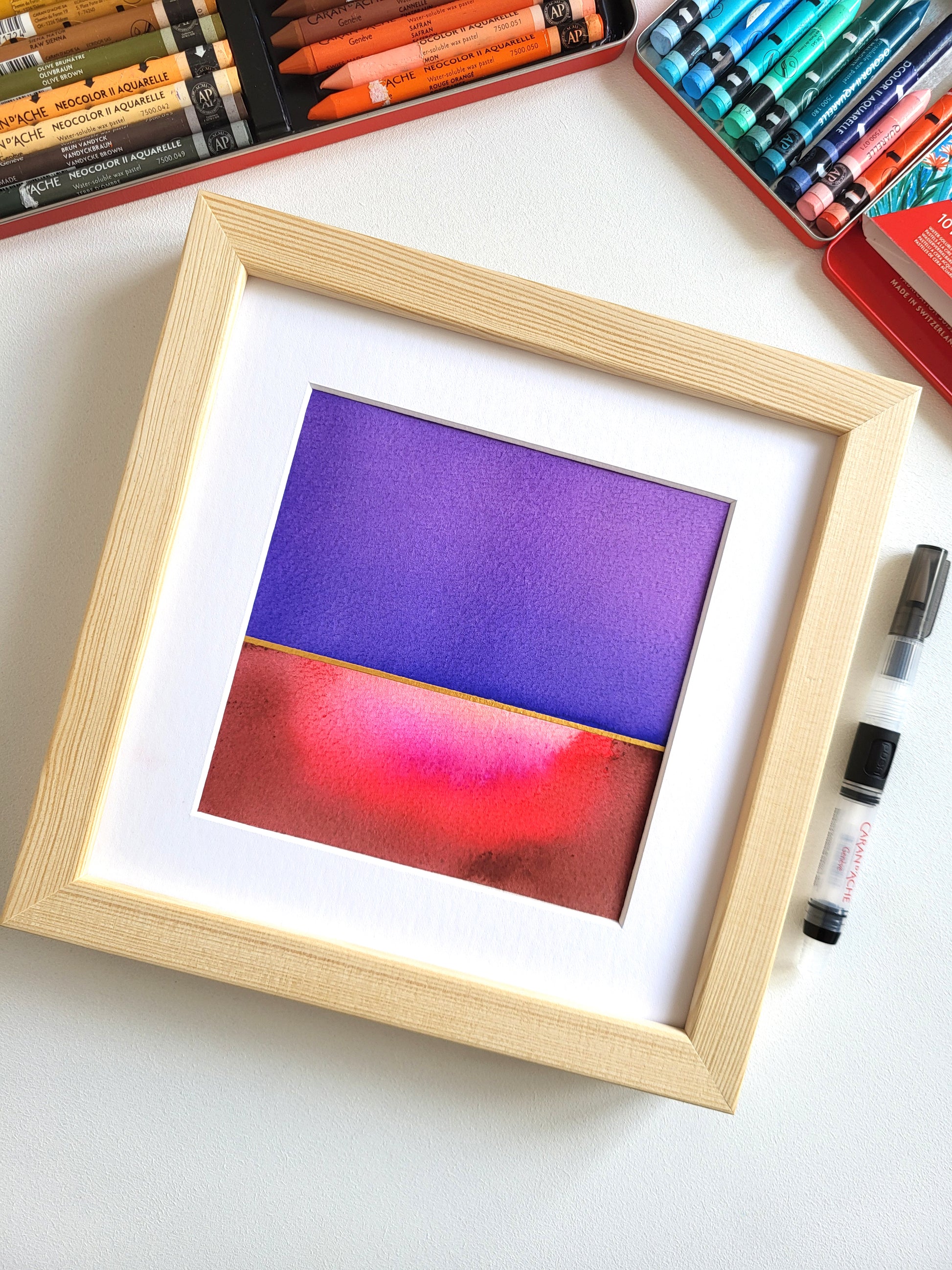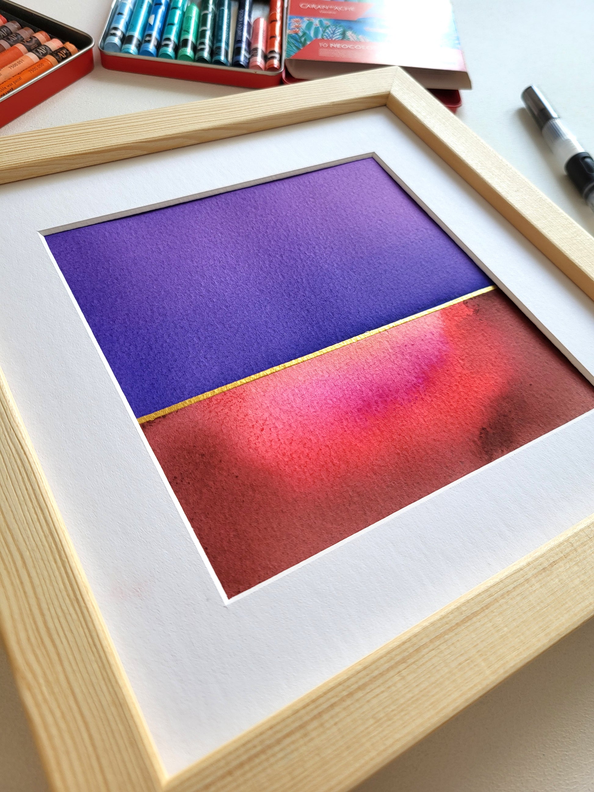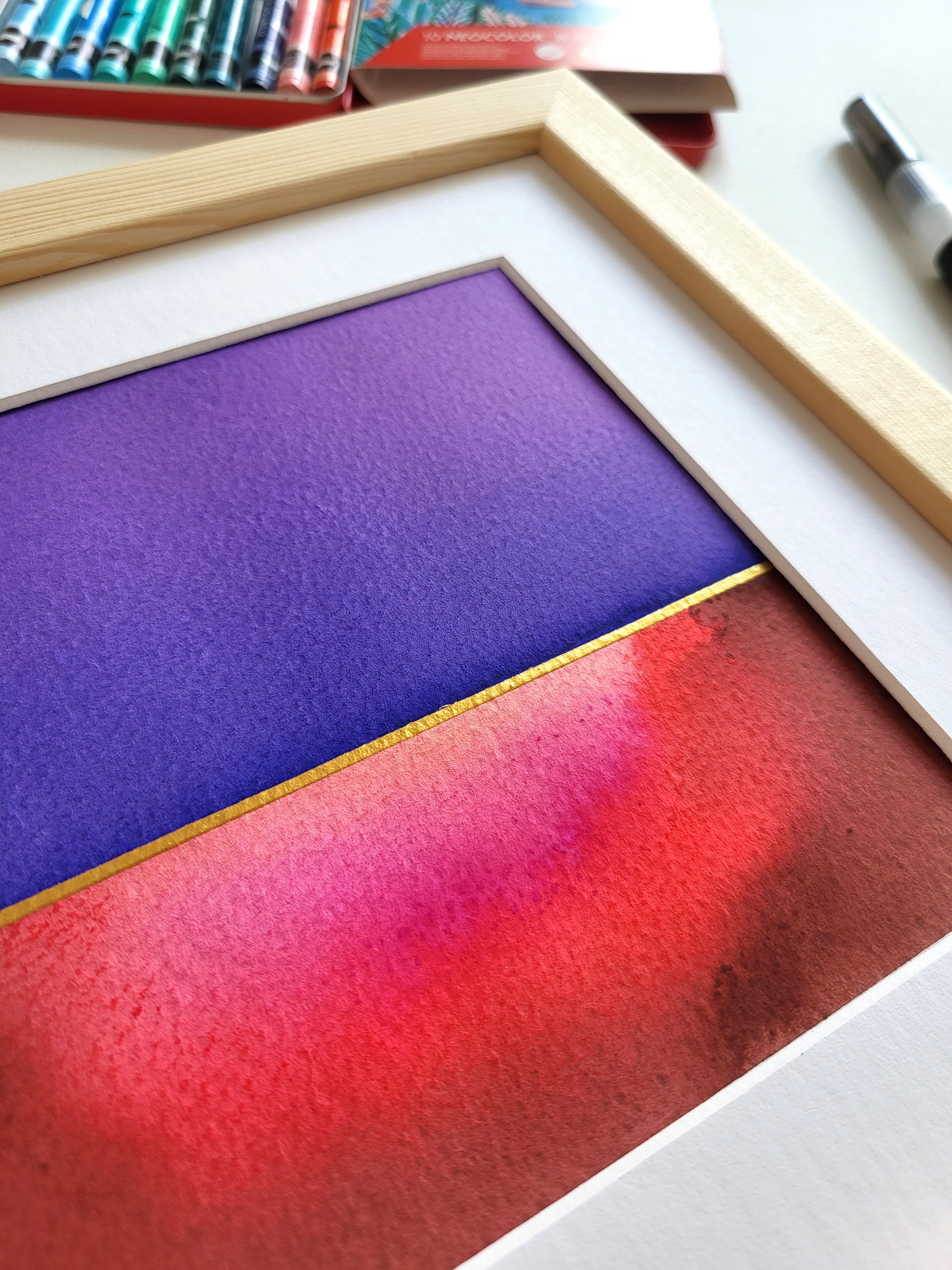 Praca na papierze akwarelowym z kolekcji "Golden Horizon", wyróżniająca się przepiękną, żywą kolorystyką oraz subtelnymi złotymi akcentami.