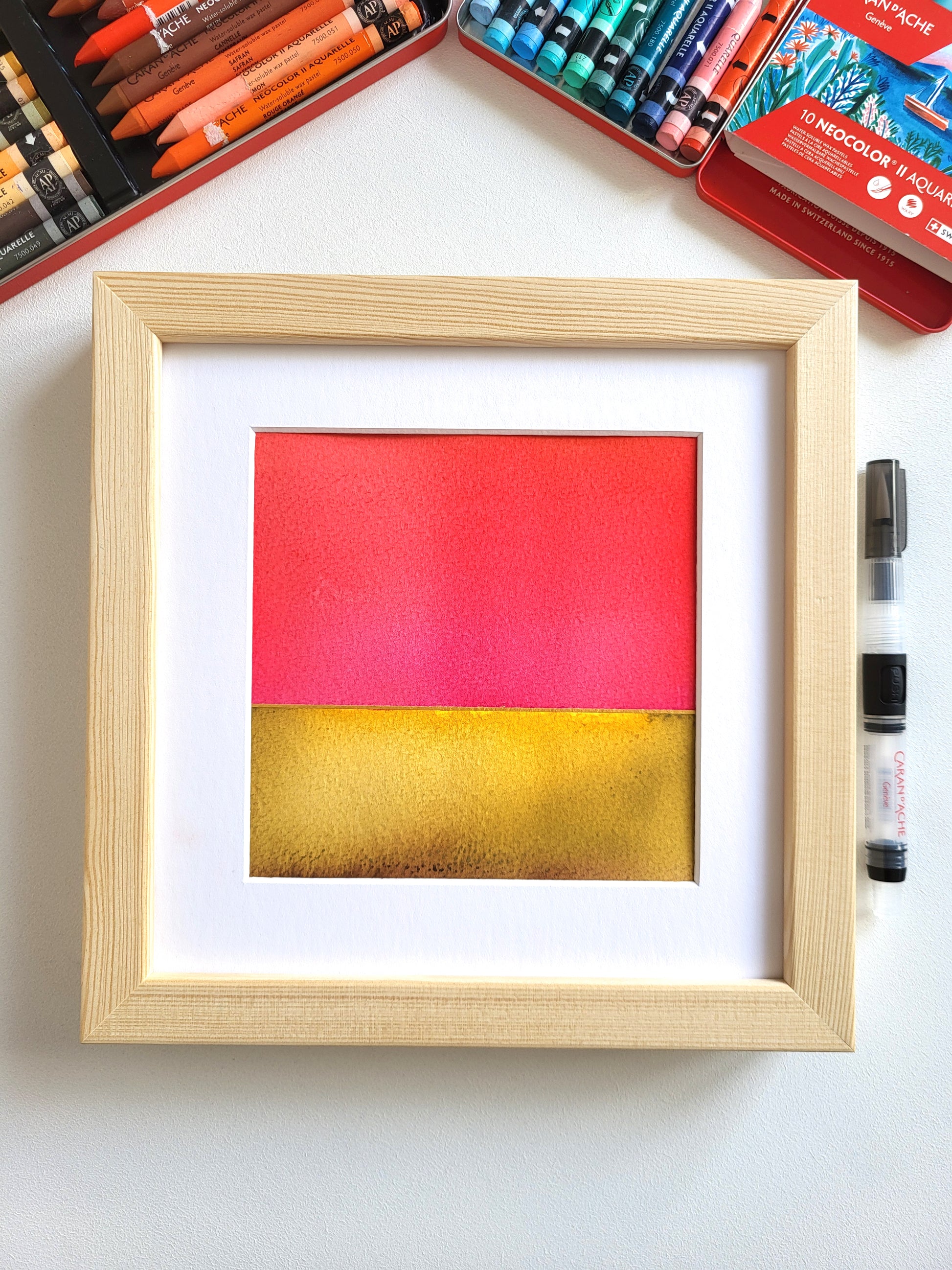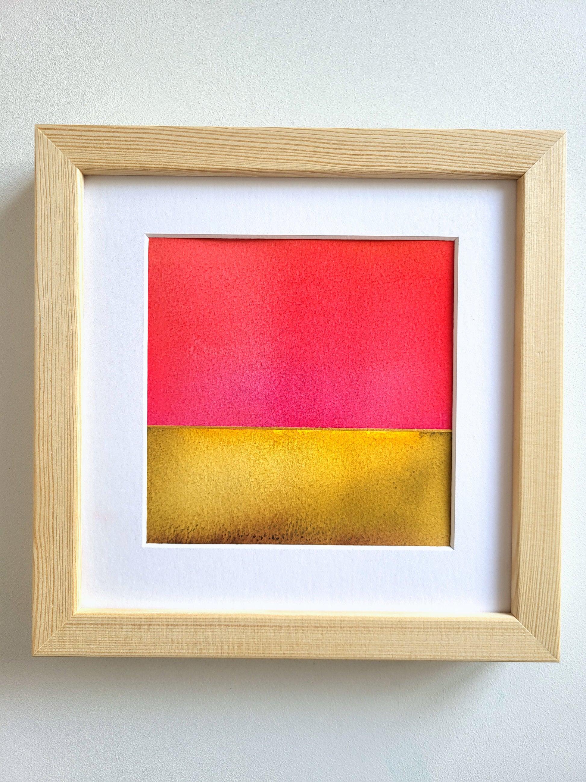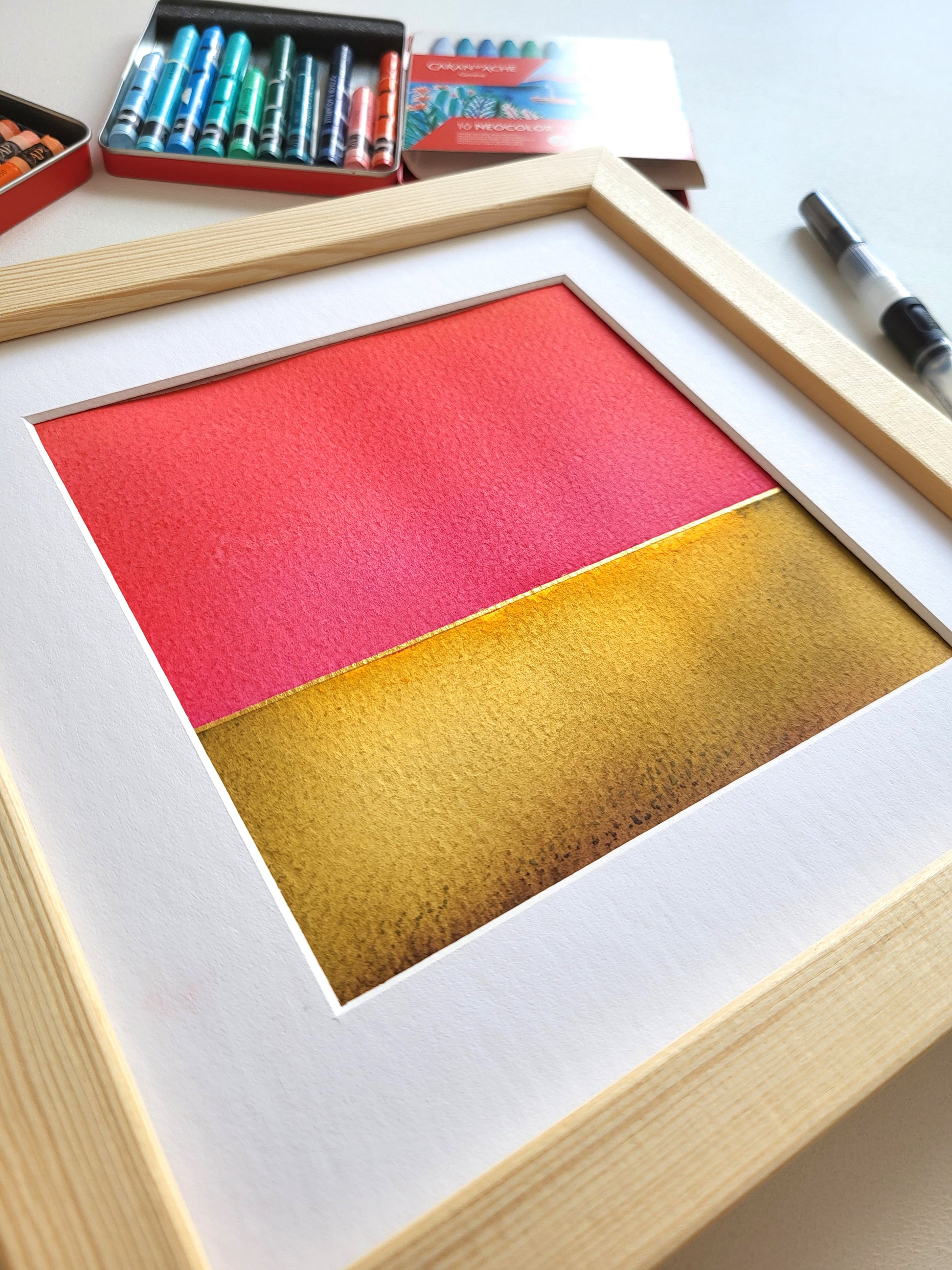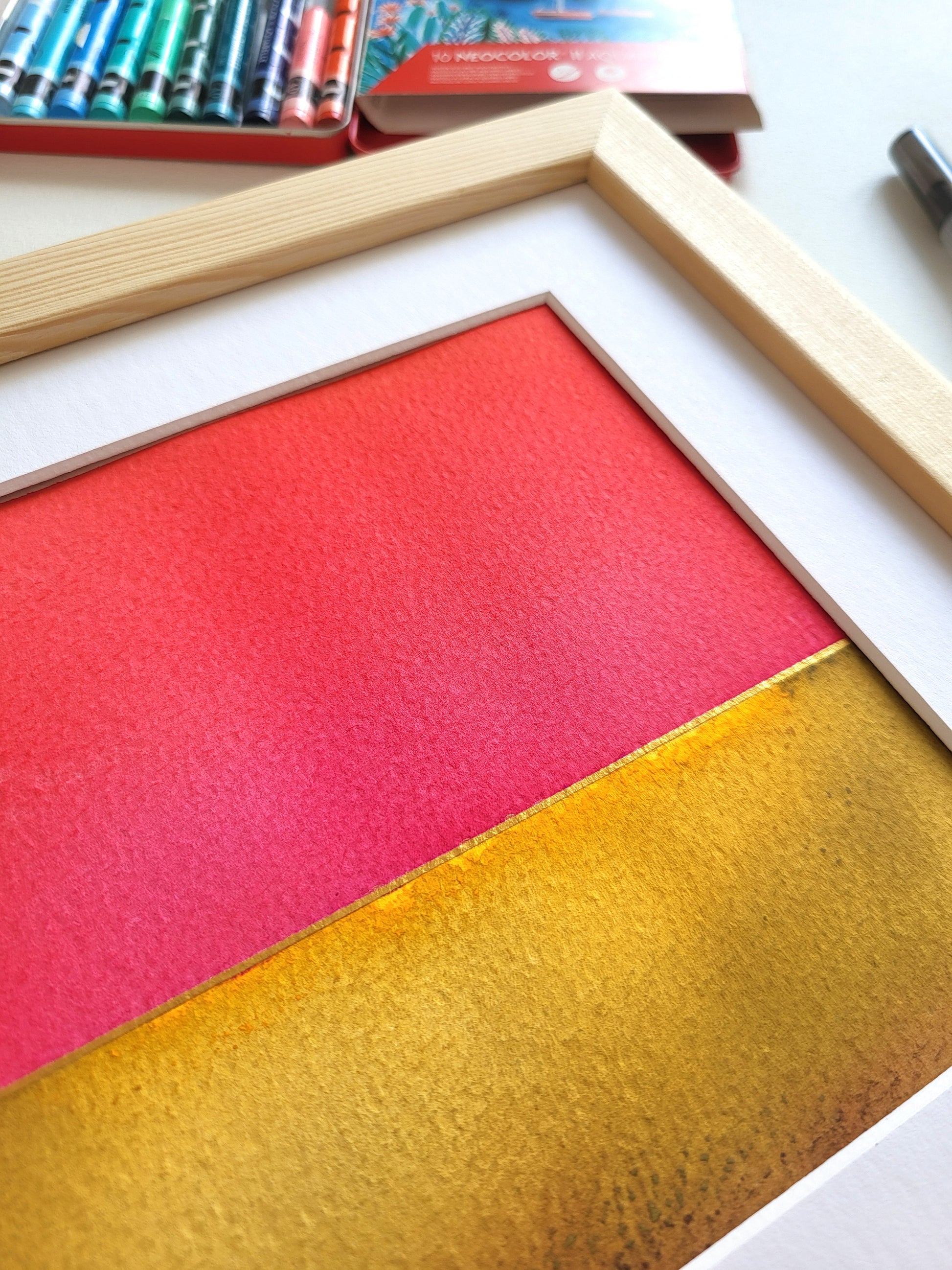 Praca na papierze akwarelowym z kolekcji "Golden Horizon", wyróżniająca się przepiękną, żywą kolorystyką oraz subtelnymi złotymi akcentami.