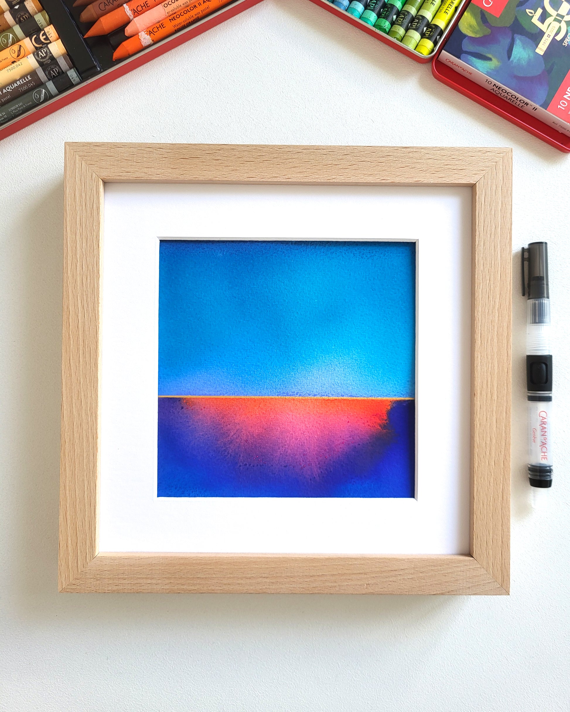 Praca na papierze akwarelowym z kolekcji "Golden Horizon", wyróżniająca się przepiękną, żywą kolorystyką oraz subtelnymi złotymi akcentami.