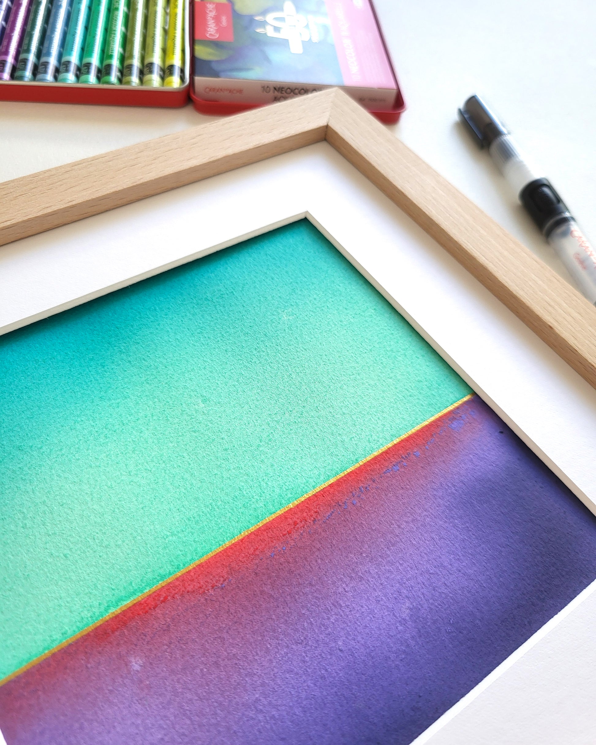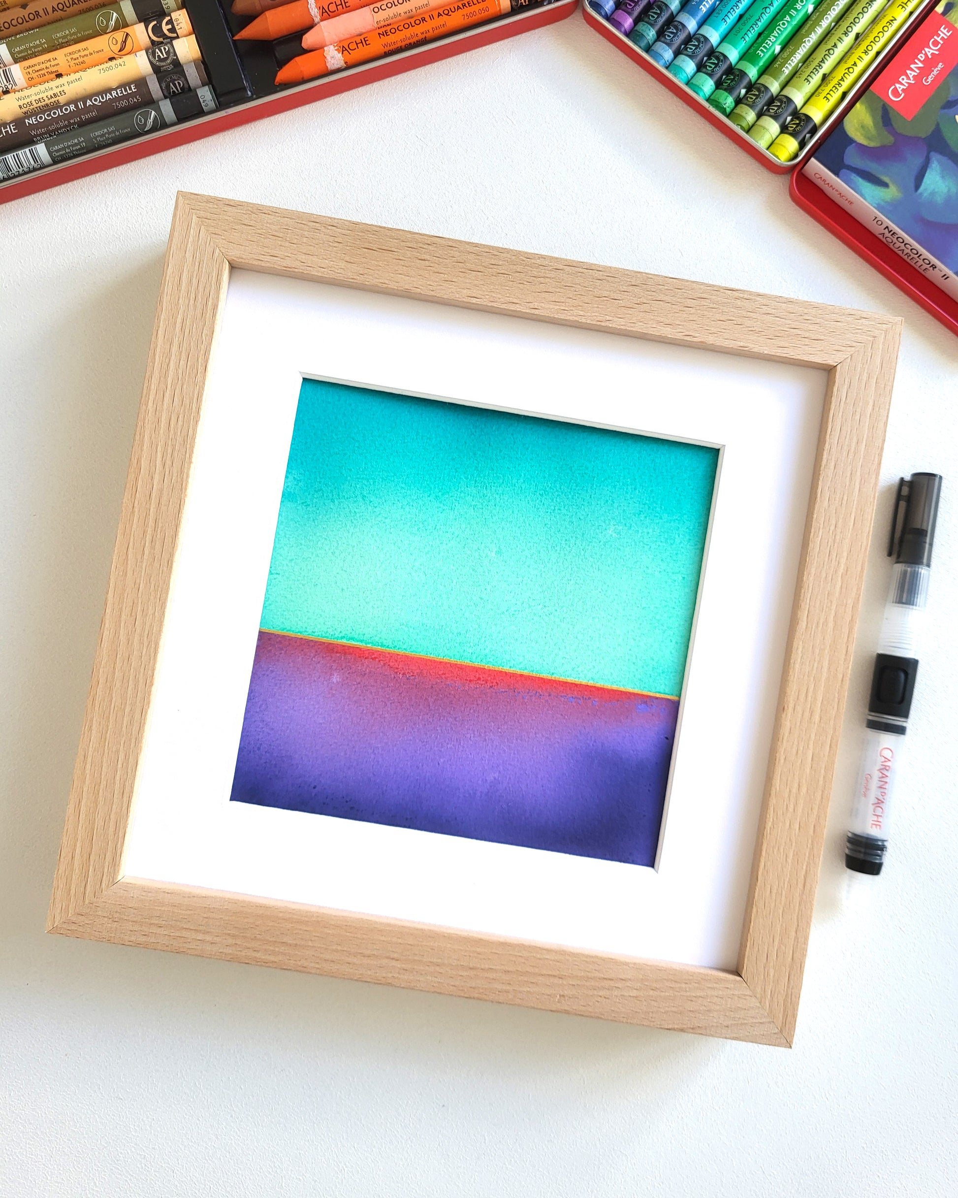 ✹ Oprawiona w passe partout i drewnianą ramę ( sosna lub buk ) ze szkłem akrylowym, gotowa do zawieszenia lub postawienia ( szeroki profil ramy umożliwia nie tylko powieszenie pracy na ścianie ale również postawienie jej na półce czy komodzie ).
