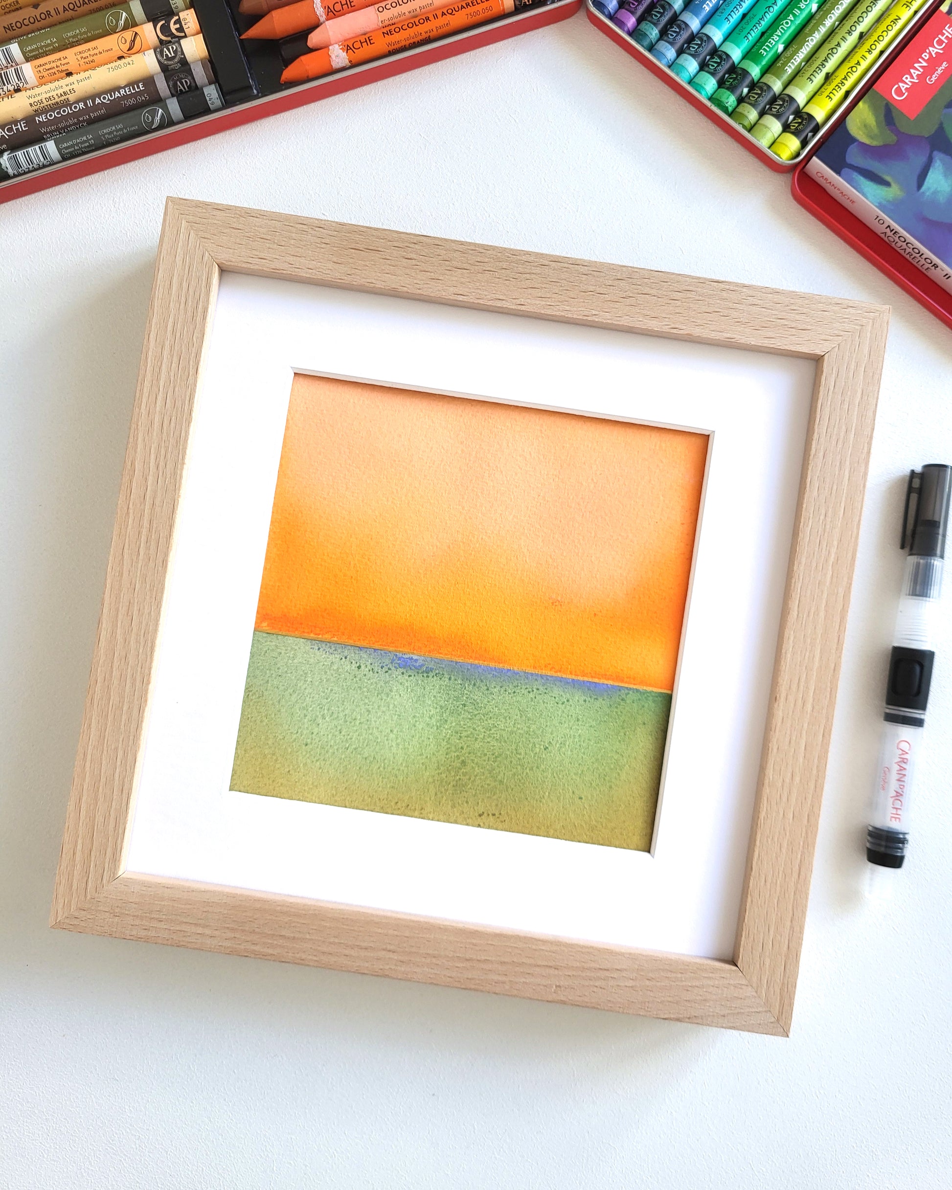 Praca na papierze akwarelowym z kolekcji "Golden Horizon", wyróżniająca się przepiękną, żywą kolorystyką oraz subtelnymi złotymi akcentami.