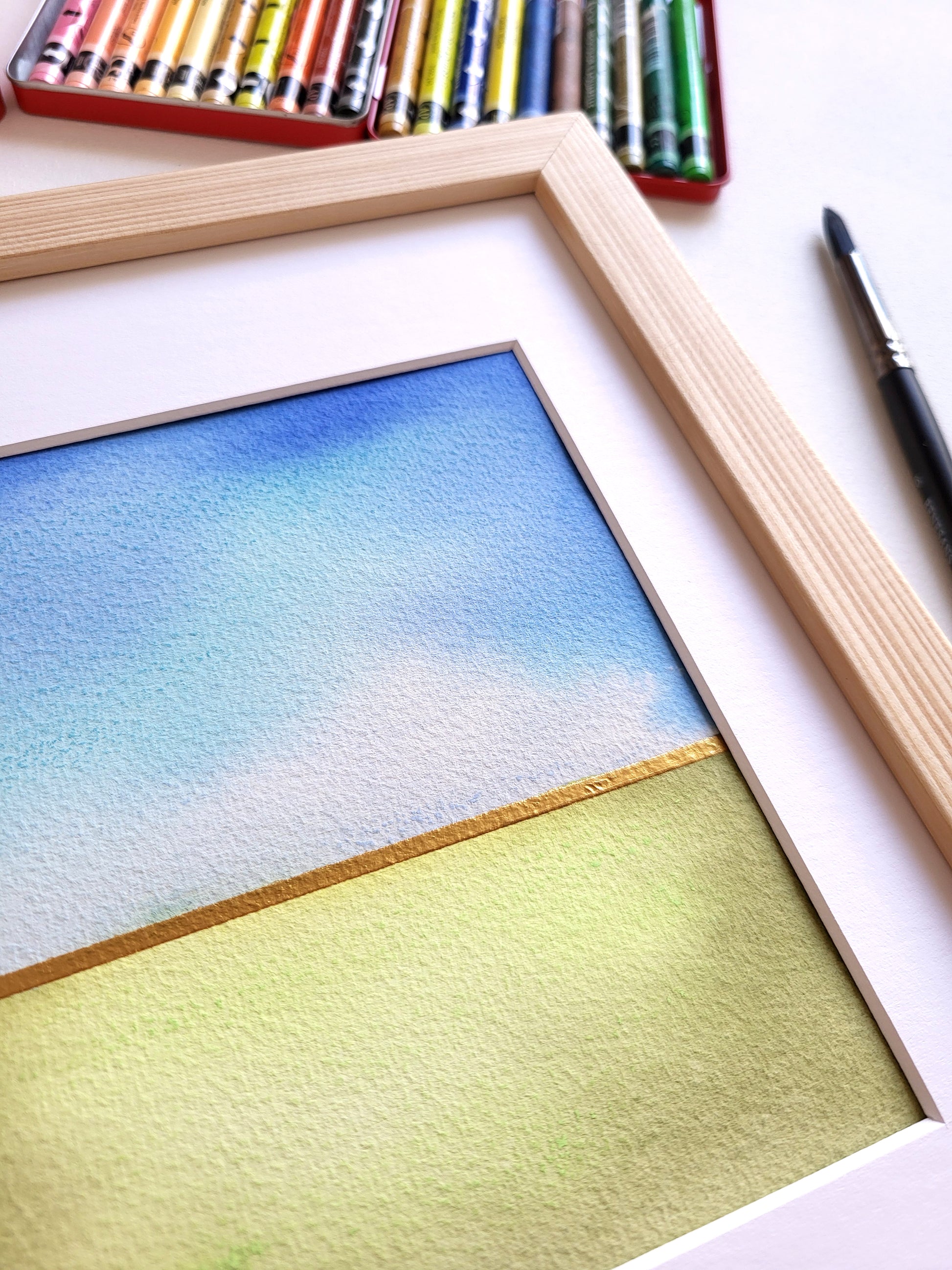 Praca na papierze akwarelowym z kolekcji "Golden Horizon", wyróżniająca się przepiękną, żywą kolorystyką oraz subtelnymi złotymi akcentami.