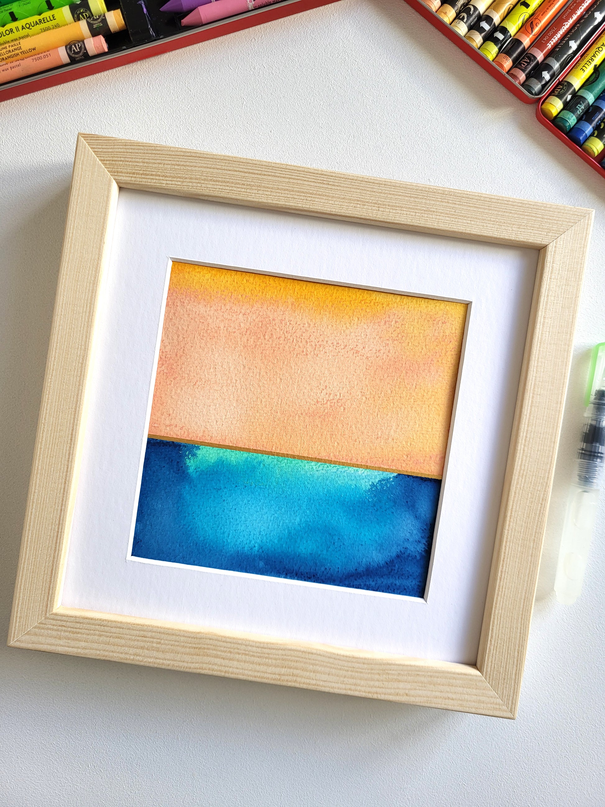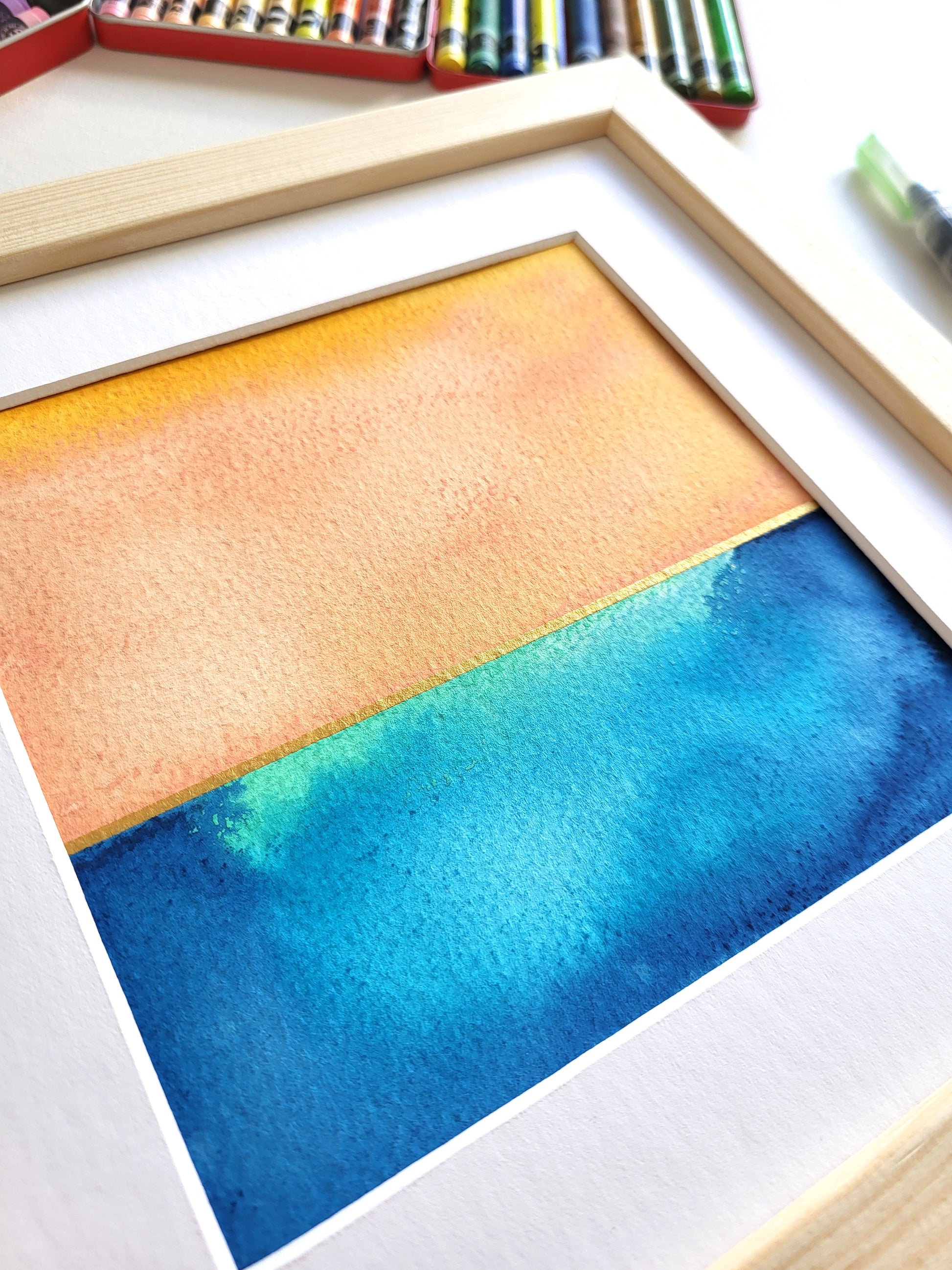Praca na papierze akwarelowym z kolekcji "Golden Horizon", wyróżniająca się przepiękną, żywą kolorystyką oraz subtelnymi złotymi akcentami.