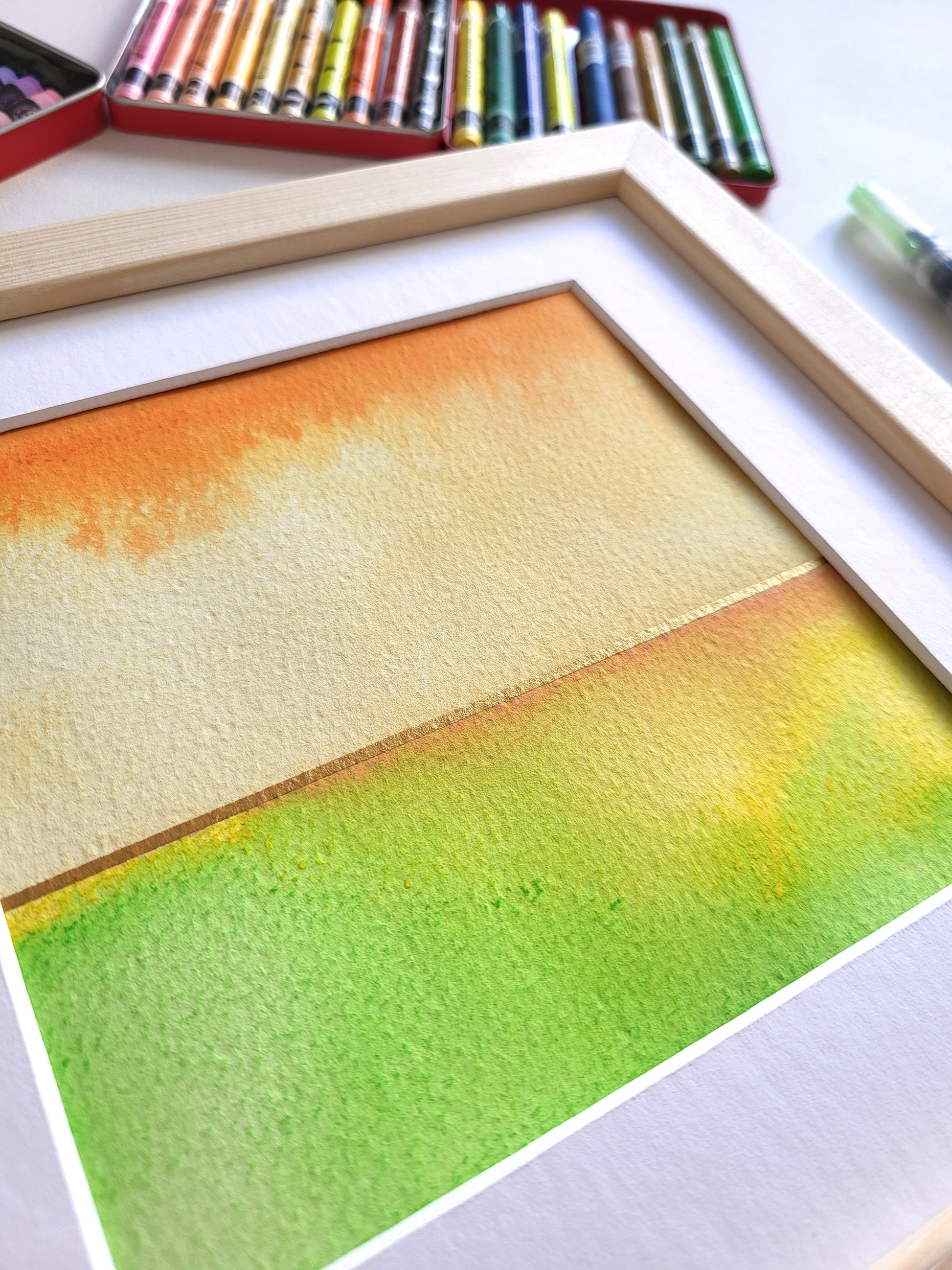 Praca na papierze akwarelowym z kolekcji "Golden Horizon", wyróżniająca się przepiękną, żywą kolorystyką oraz subtelnymi złotymi akcentami.