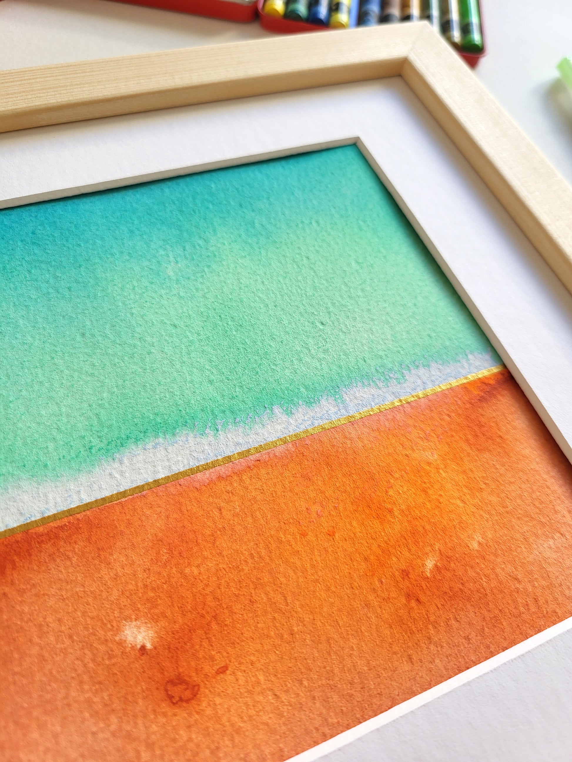 Praca na papierze akwarelowym z kolekcji "Golden Horizon", wyróżniająca się przepiękną, żywą kolorystyką oraz subtelnymi złotymi akcentami.
