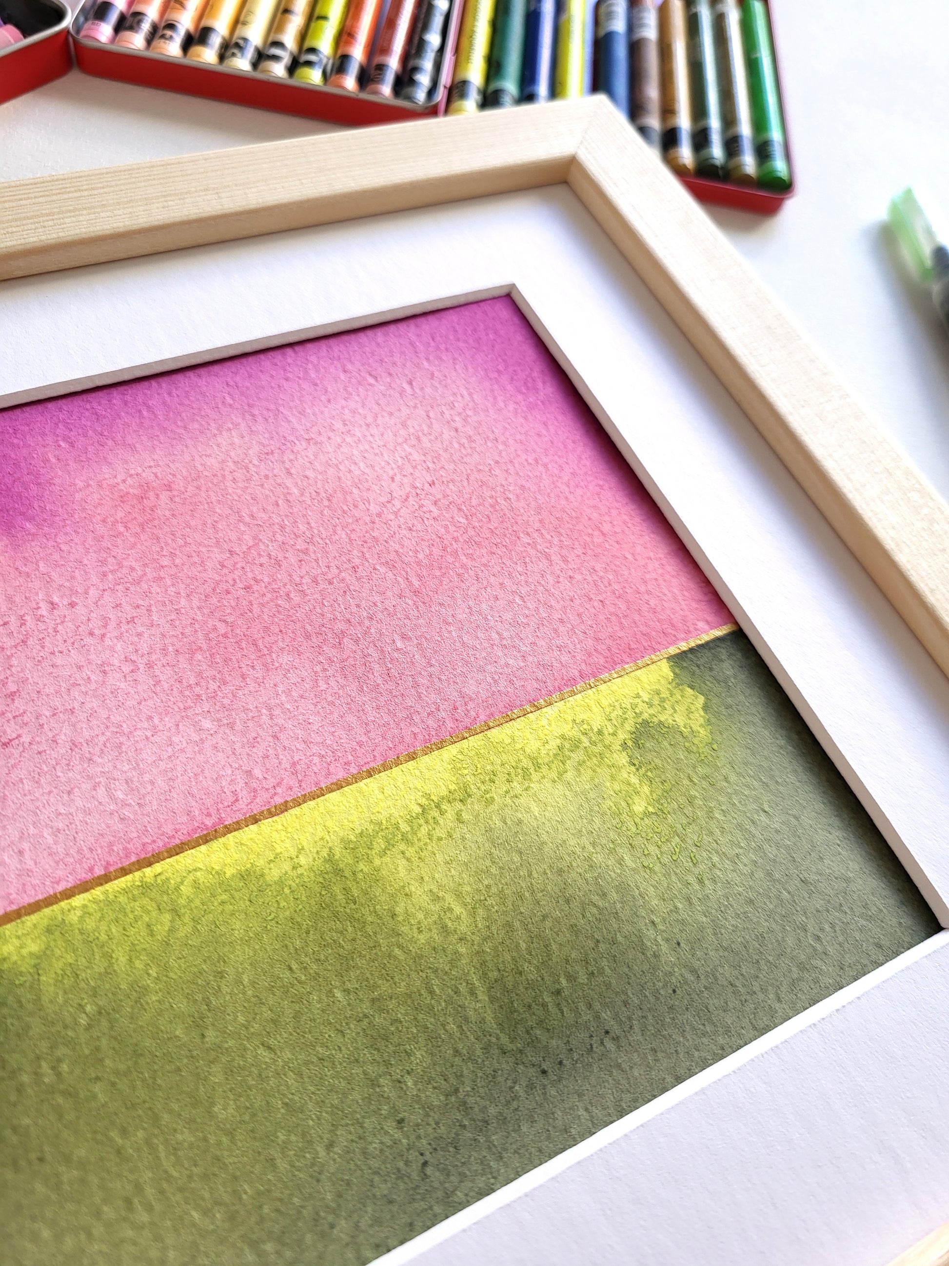 Praca na papierze akwarelowym z kolekcji "Golden Horizon", wyróżniająca się przepiękną, żywą kolorystyką oraz subtelnymi złotymi akcentami.