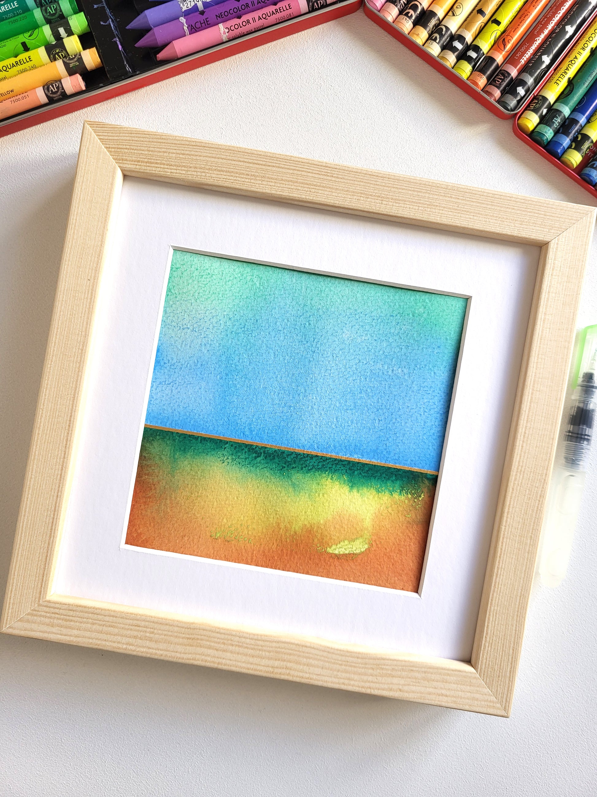 Praca na papierze akwarelowym z kolekcji "Golden Horizon", wyróżniająca się przepiękną, żywą kolorystyką oraz subtelnymi złotymi akcentami.