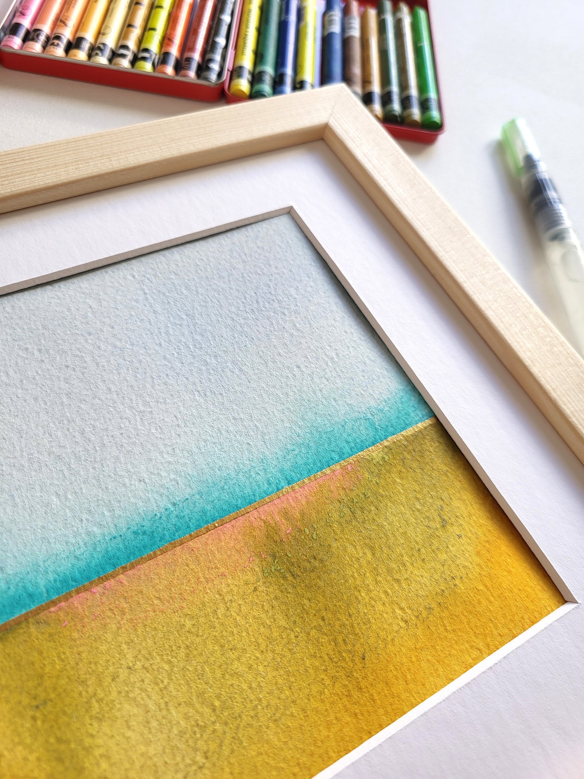 Praca na papierze akwarelowym z kolekcji "Golden Horizon", wyróżniająca się przepiękną, żywą kolorystyką oraz subtelnymi złotymi akcentami.