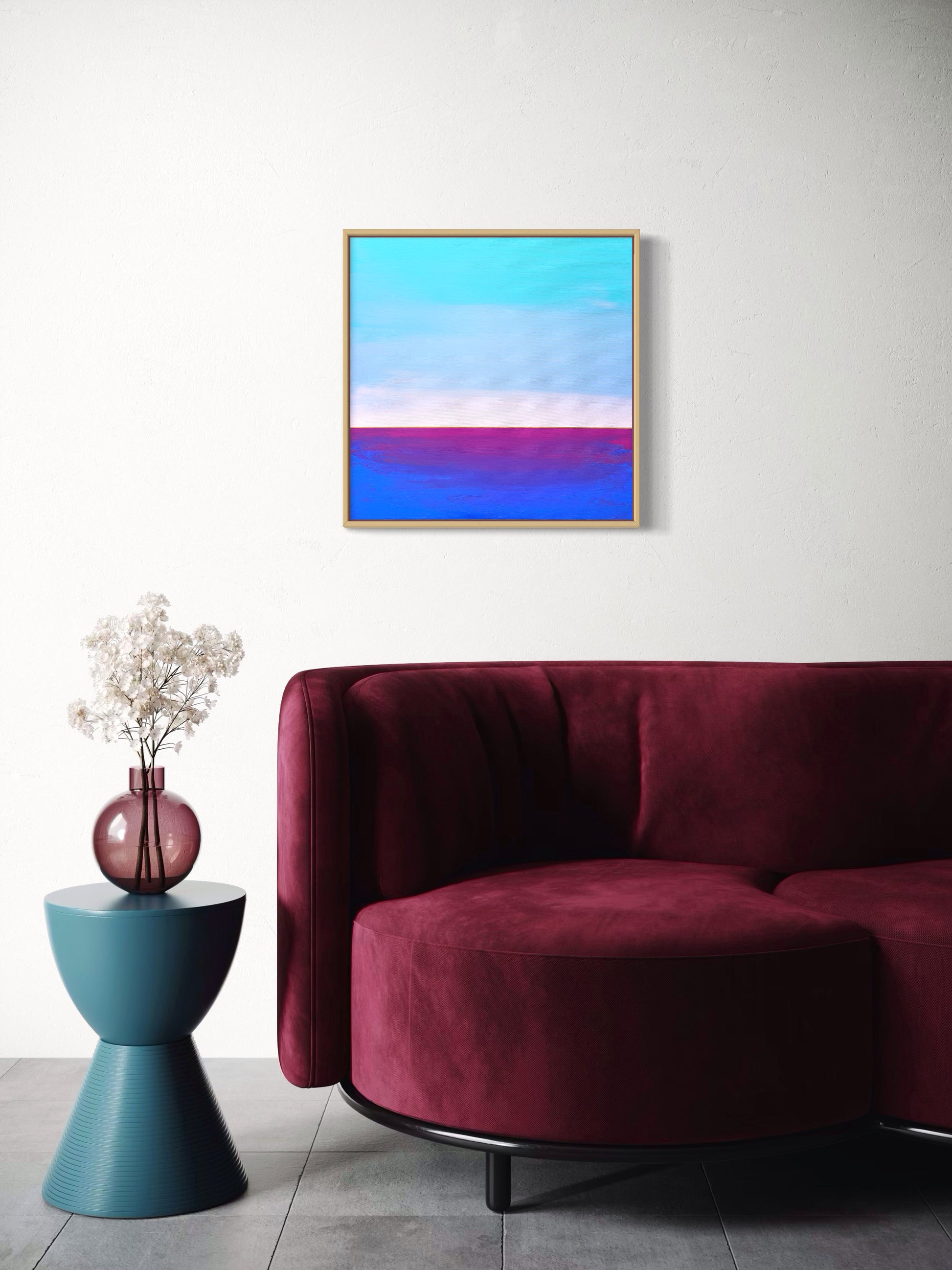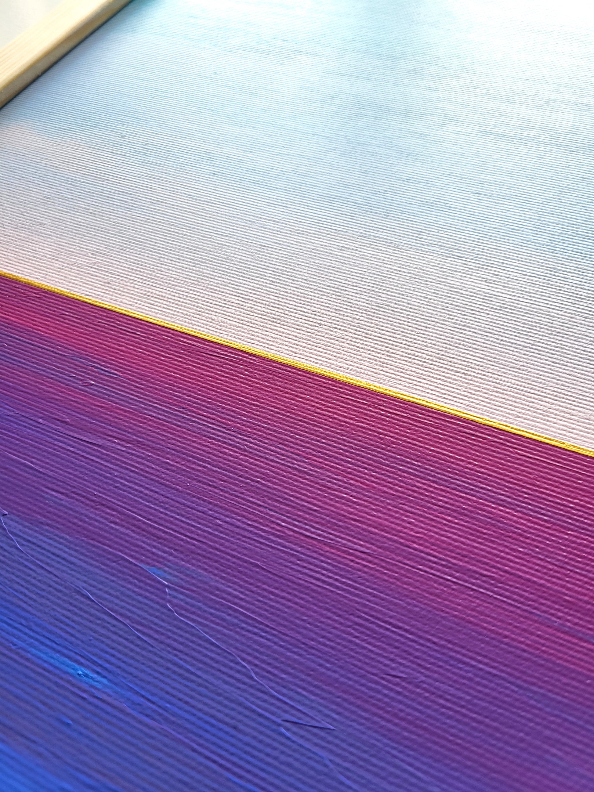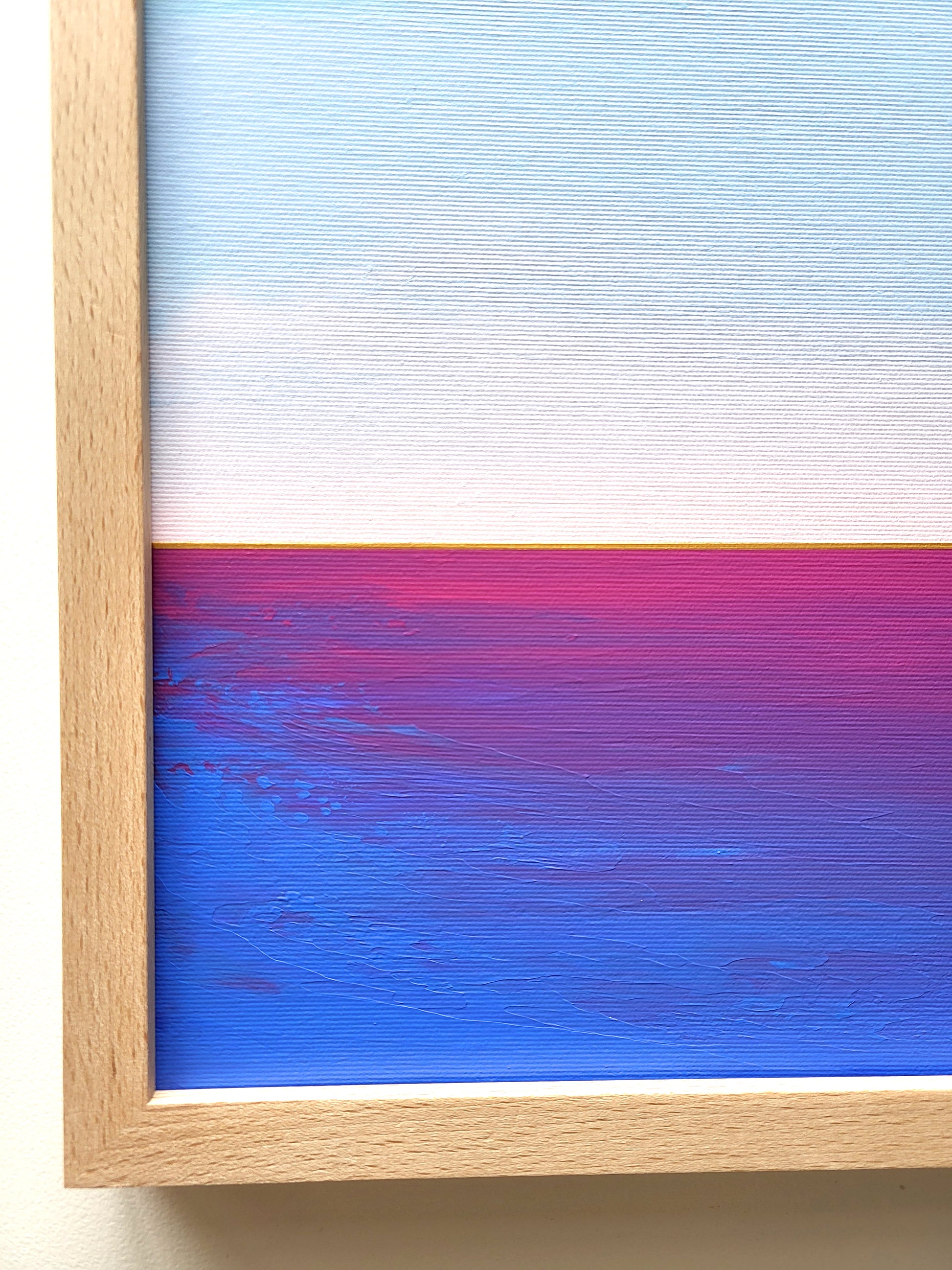 Błękitny bezkres... Abstrakcyjny pejzaż w odcieniach błękitu i różu z elementami złotej metalicznej farby.