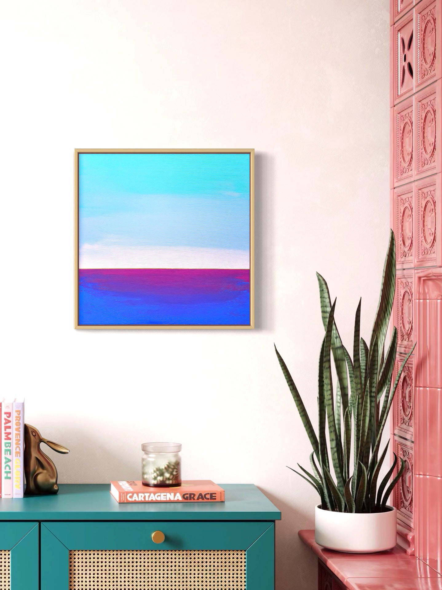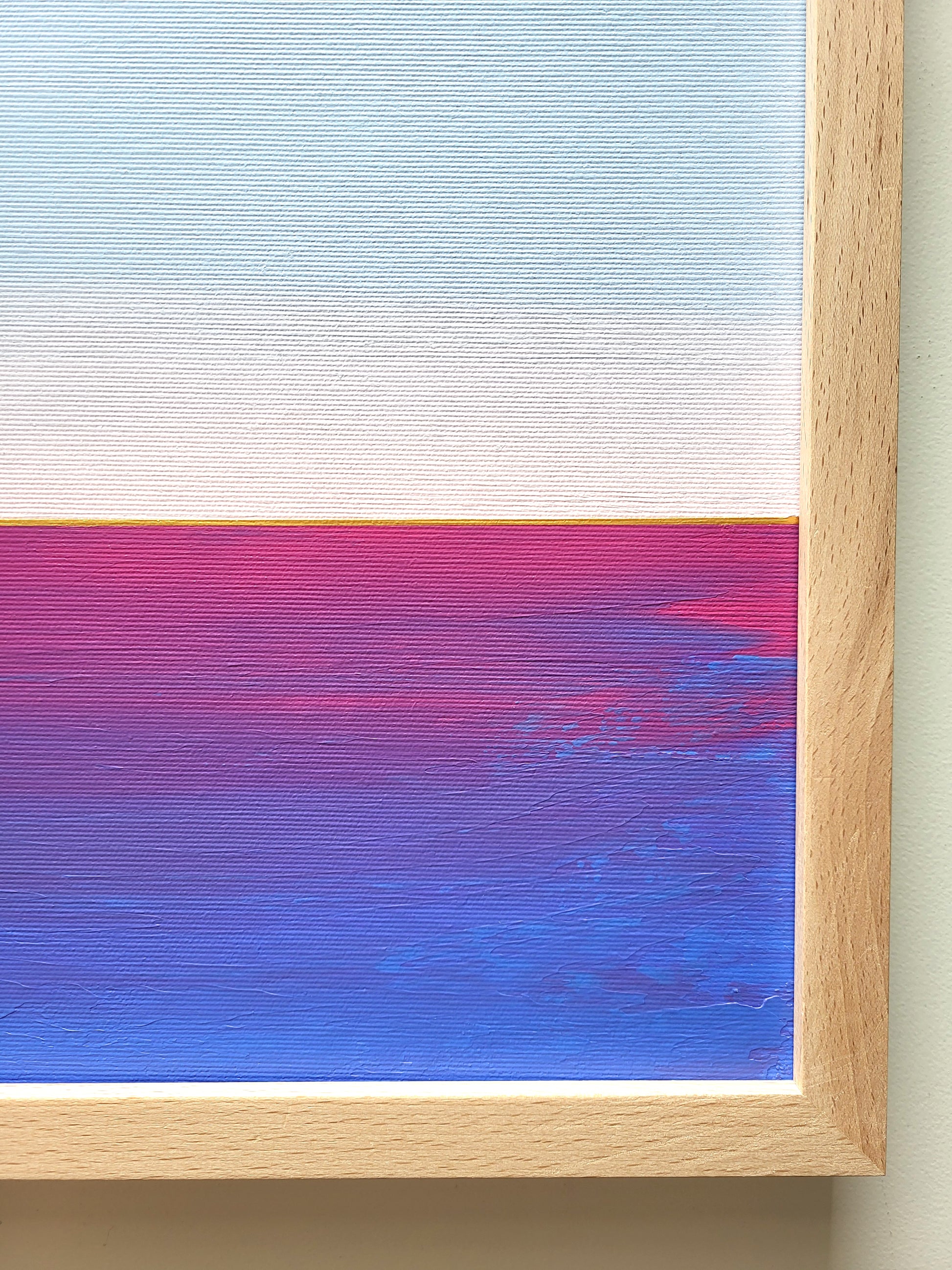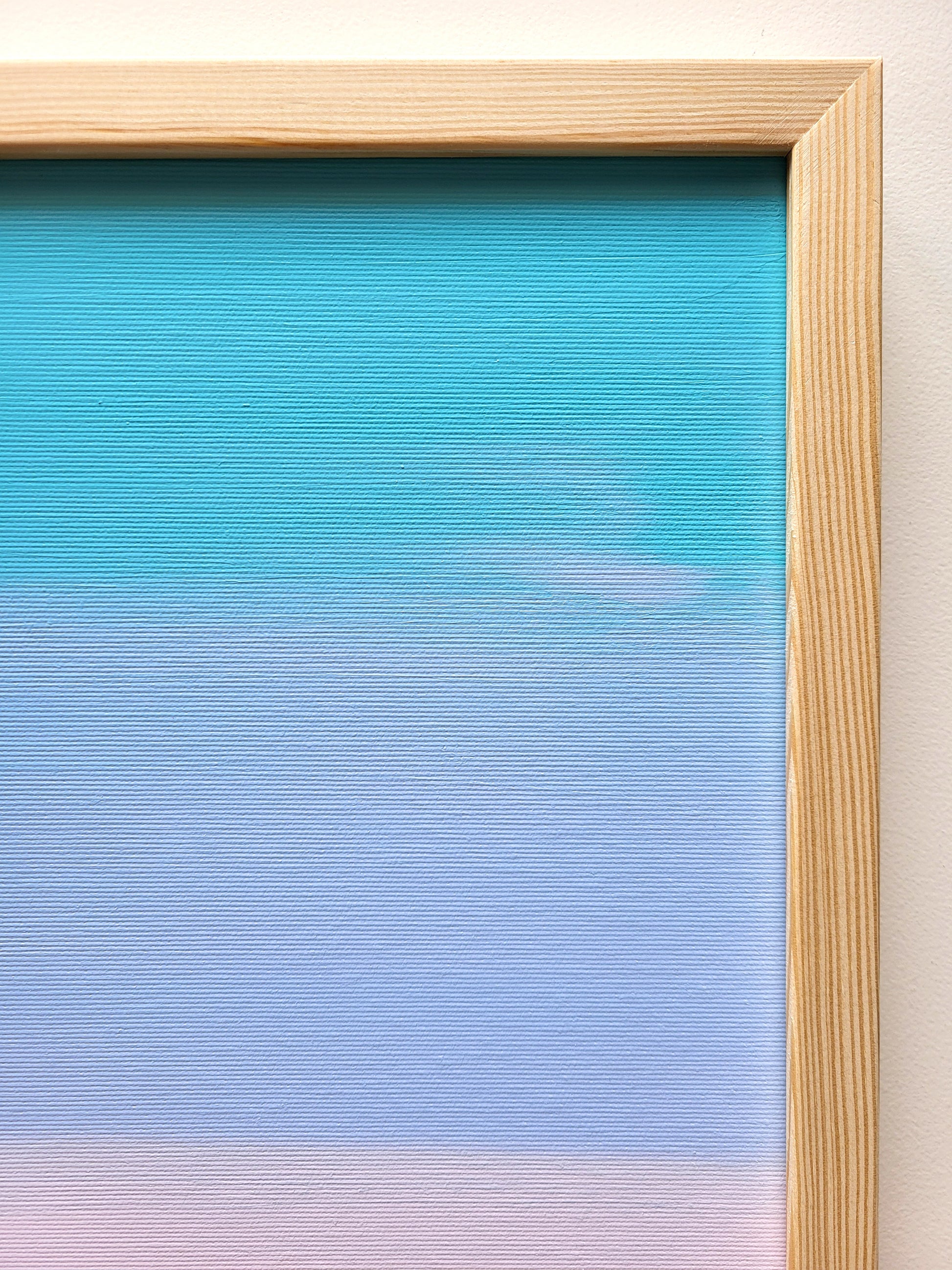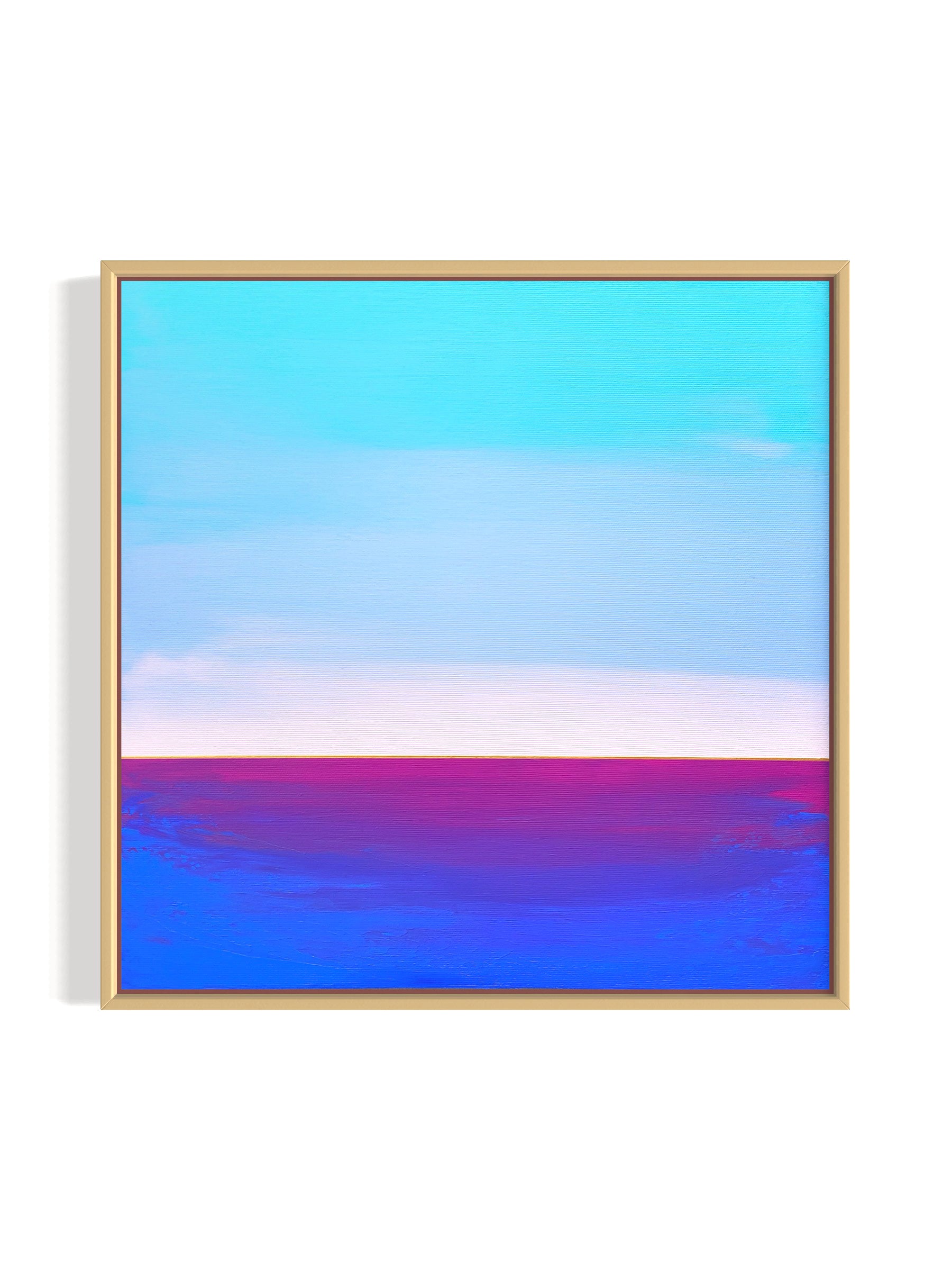 Błękitny bezkres... Abstrakcyjny pejzaż w odcieniach błękitu i różu z elementami złotej metalicznej farby.