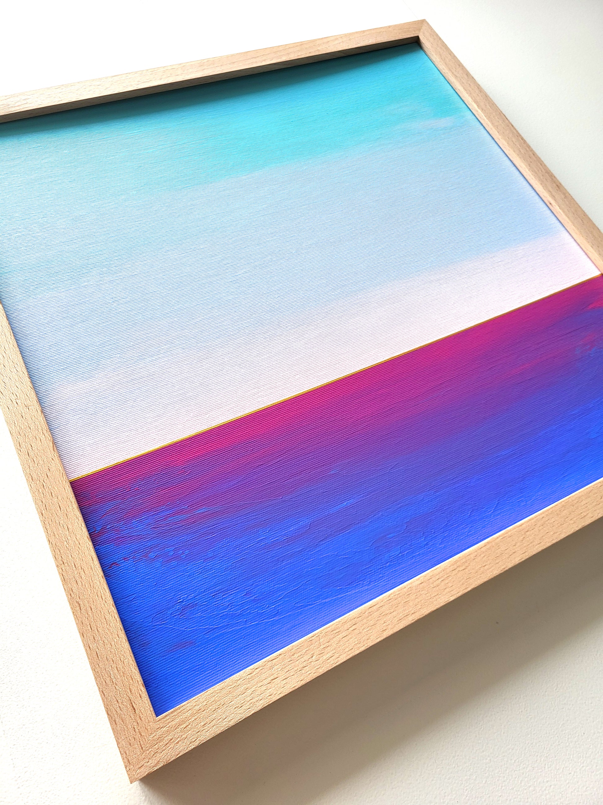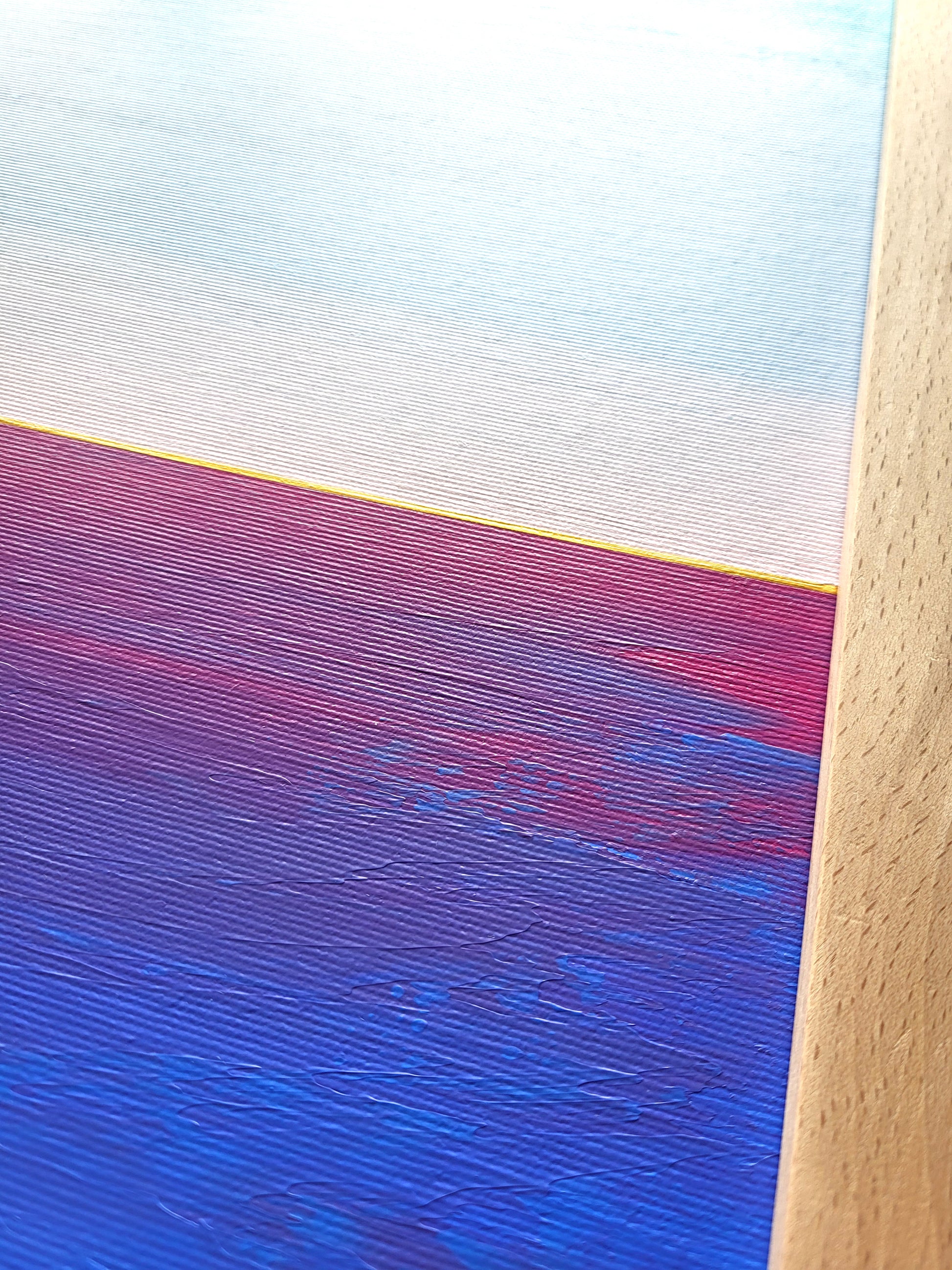 ✹ Oprawiony w ramę ze szlachetnego drewna bukowego, gotowy do zawieszenia.