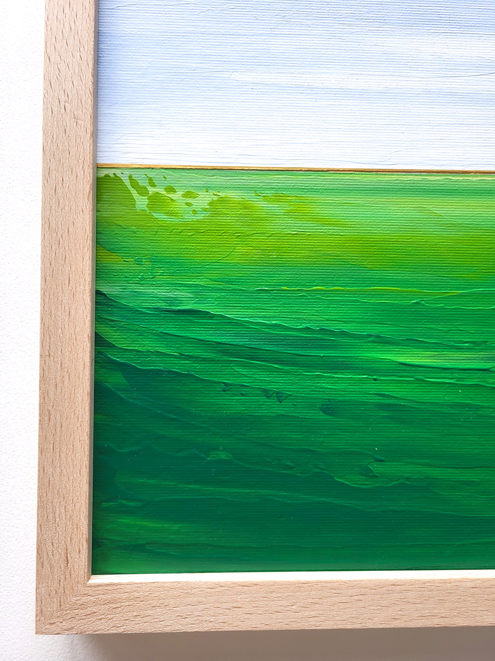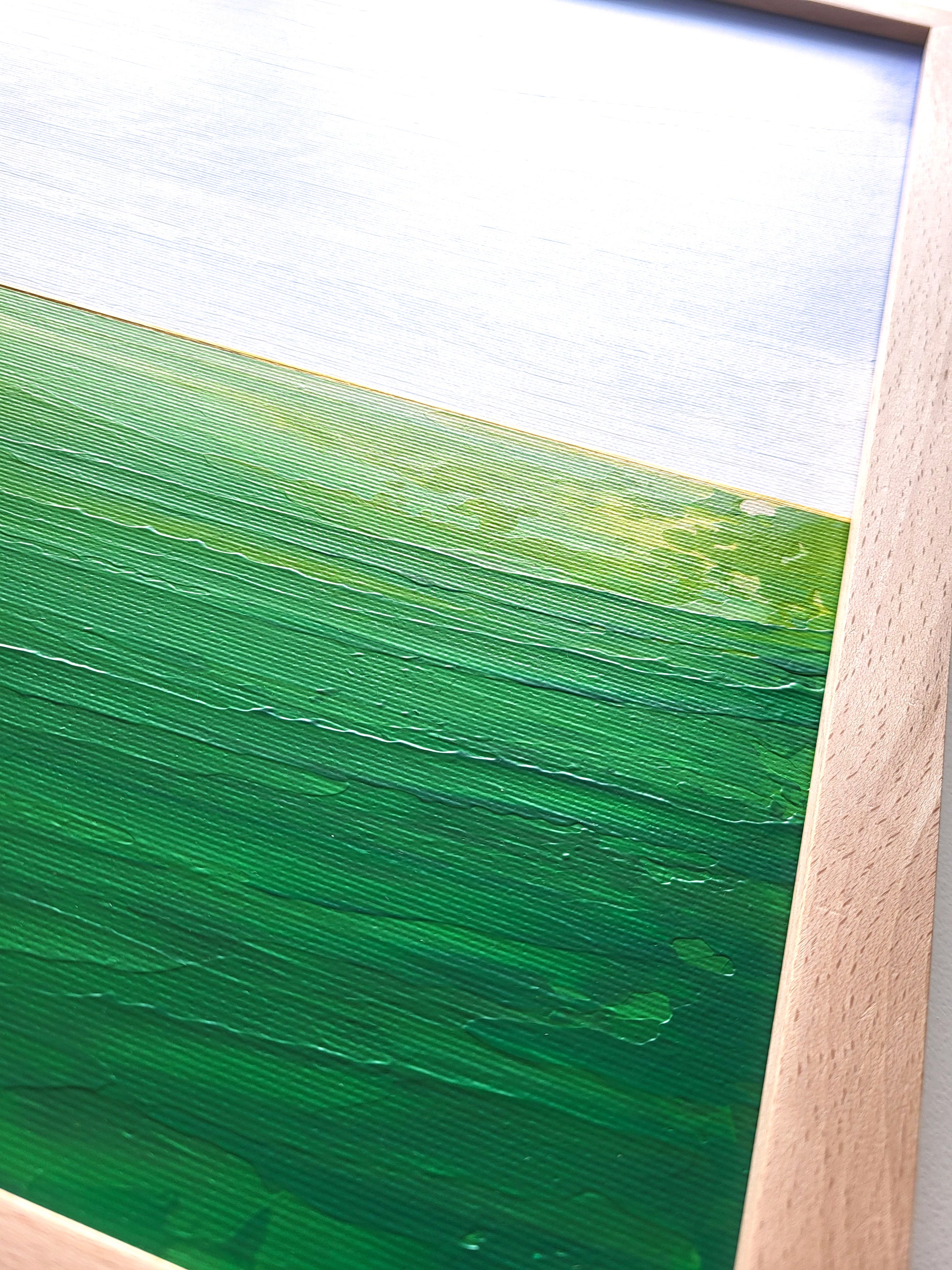 ✹ Oprawiony w ramę ze szlachetnego drewna bukowego, gotowy do zawieszenia.