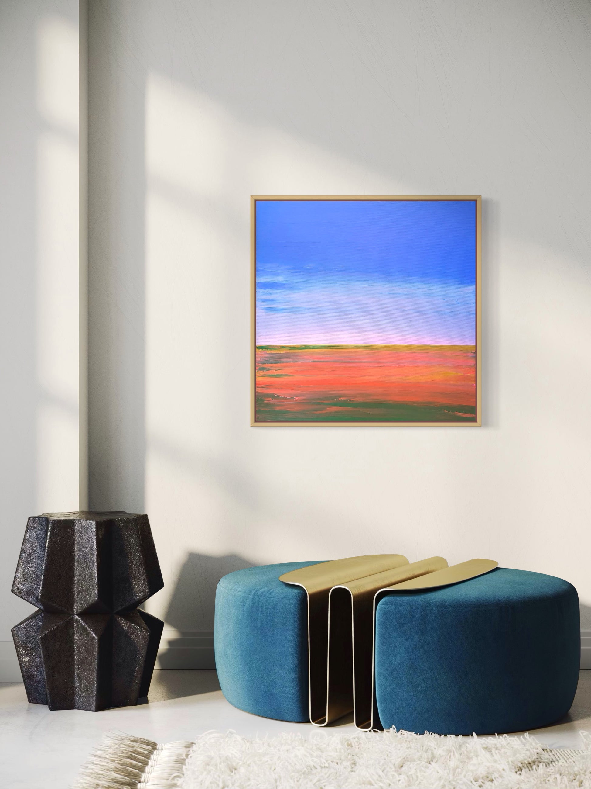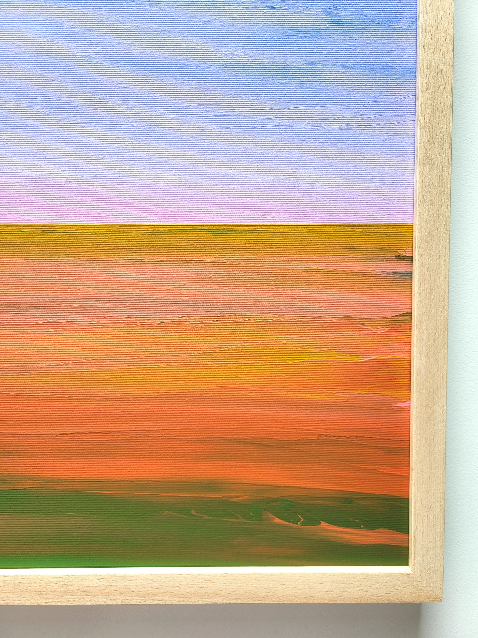 Fioletowe niebo kołyszące ziemię do snu... Abstrakcyjny pejzaż w odcieniach fioletu, zieleni i ziemistej czerwieni z elementami złotej metalicznej farby.