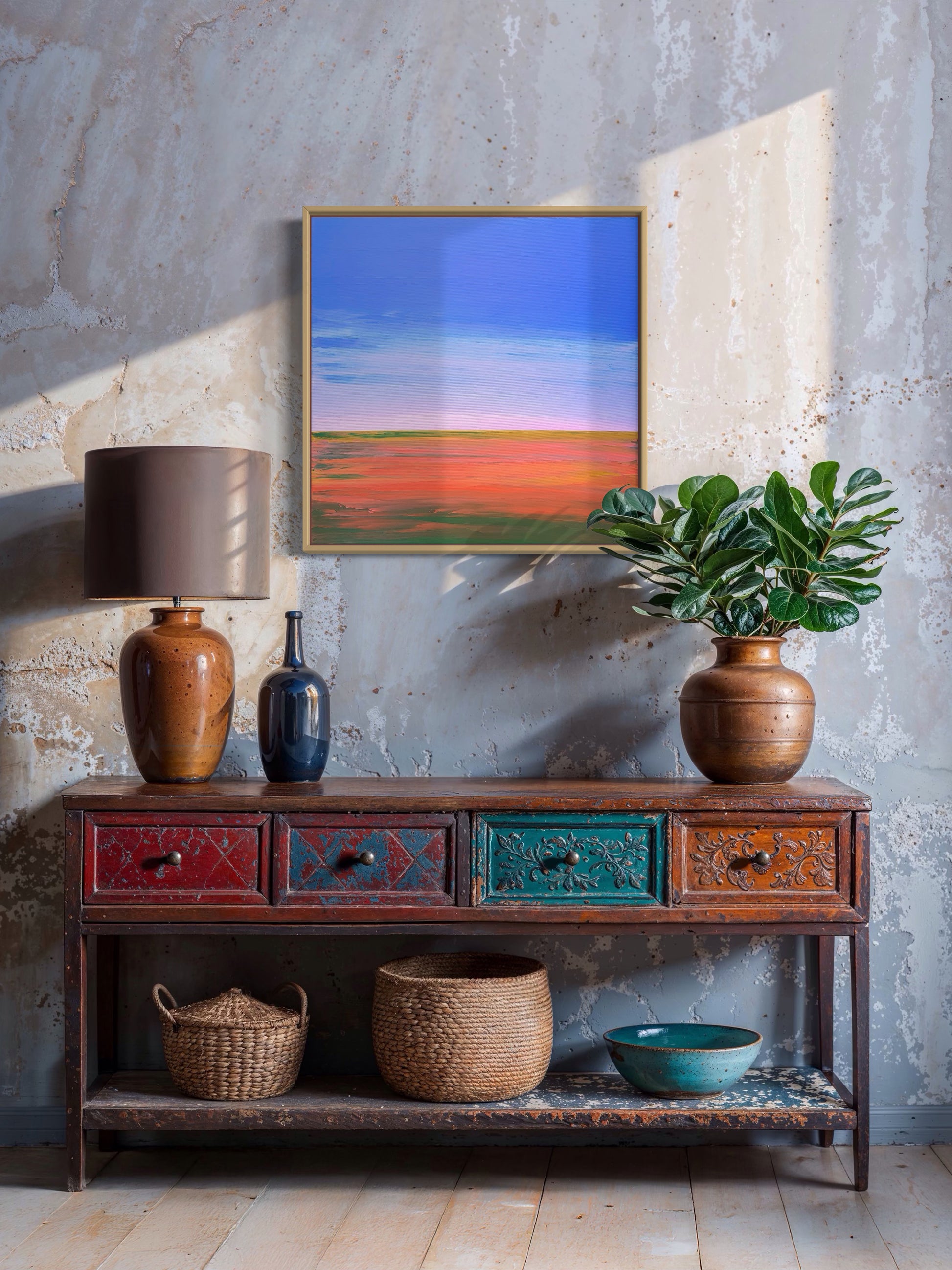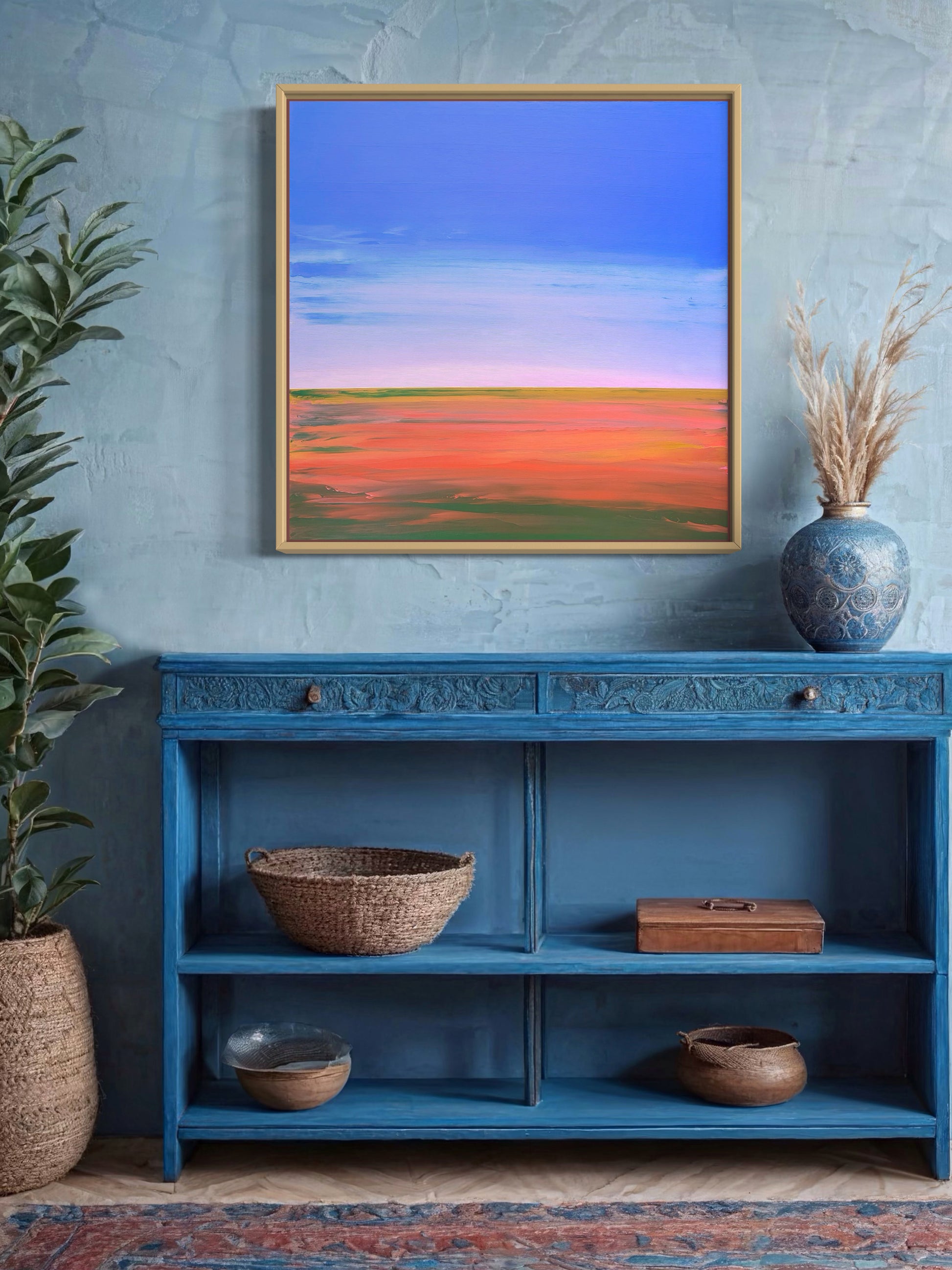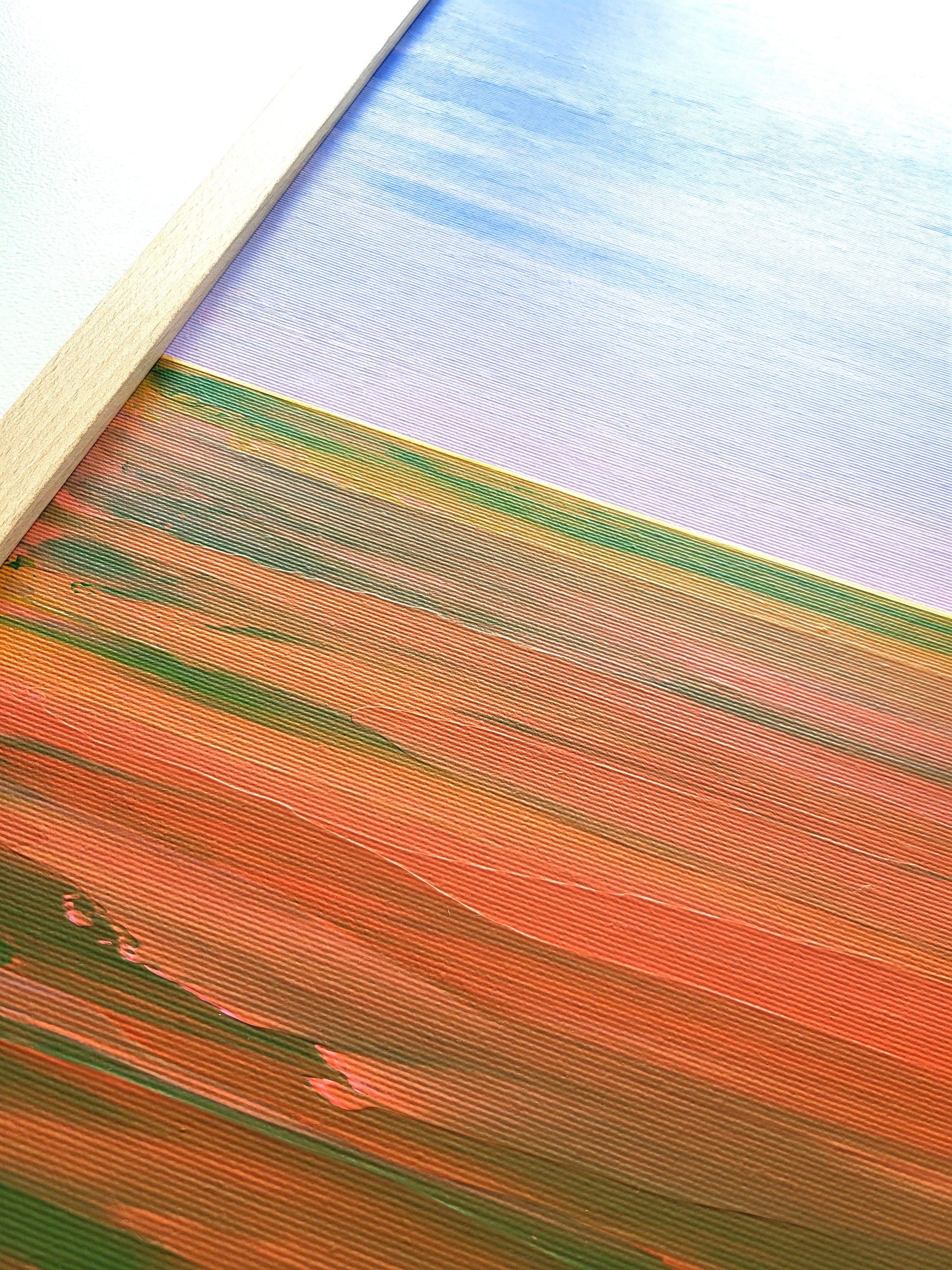 ✹ Oprawiony w ramę ze szlachetnego drewna bukowego, gotowy do zawieszenia.