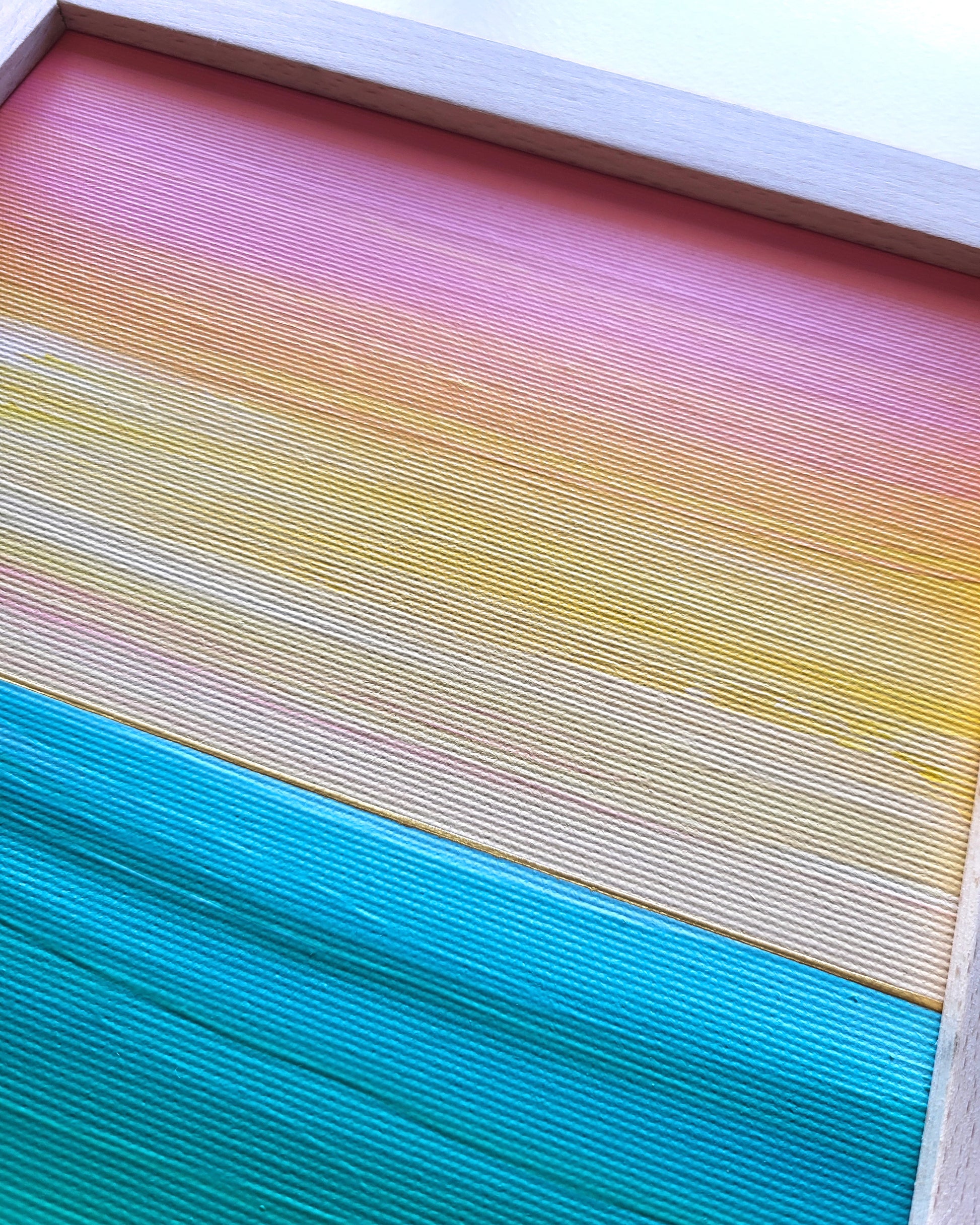 Wschód słońca rozświetlający morskie głębiny... Abstrakcyjny pejzaż w odcieniach zieleni, turkusu, różu i żółci z elementami złotej metalicznej farby.